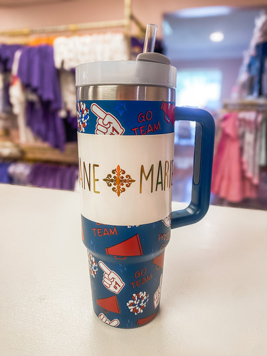 Game Day Navy & Red 30 oz Tumbler with Handle + Straw – Stainless Steel