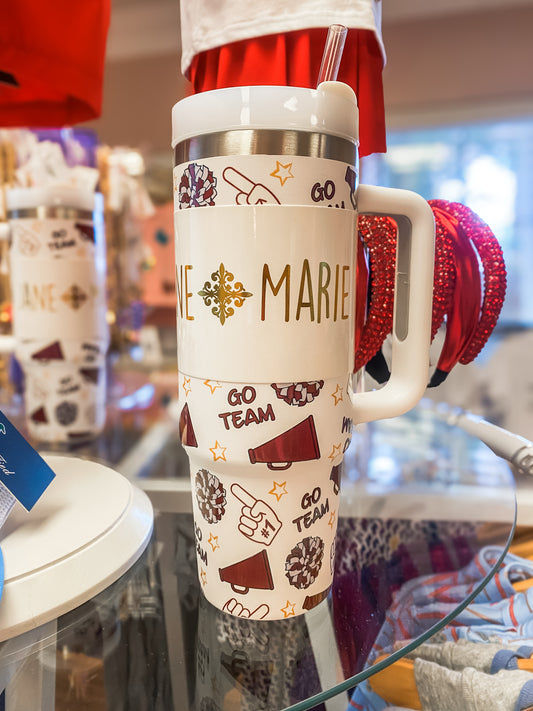 Game Day Burgundy & Gray 30 oz Tumbler with Handle + Straw – Stainless Steel
