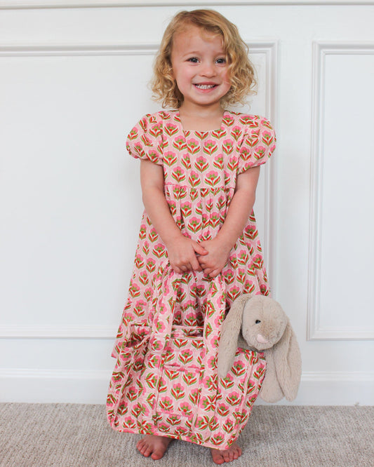 Pink Block Print Tote Bag