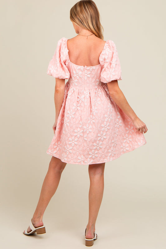 Blush Floral Embossed Puff Sleeve Maternity Dress