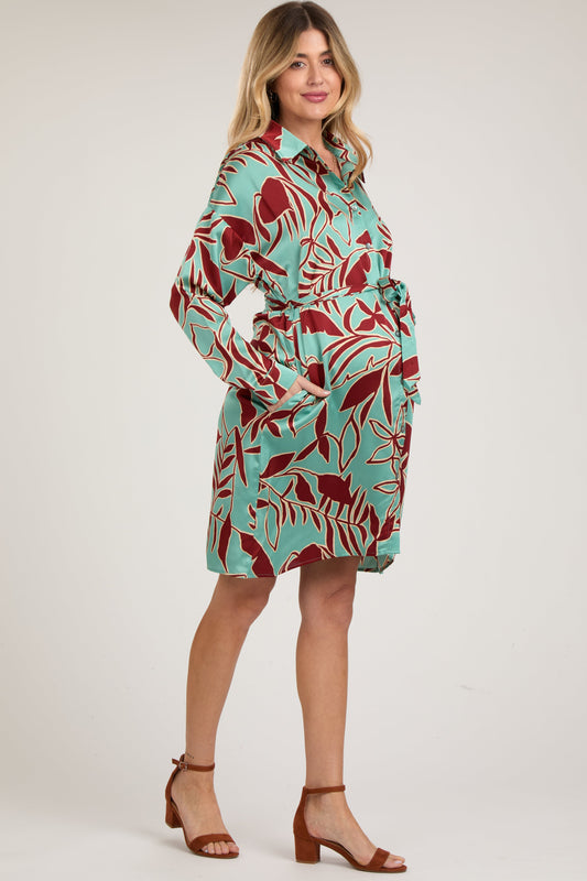 Brown Leaf Print Off Shoulder Smocked Maternity Midi Dress