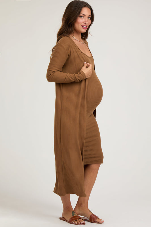 Camel Ribbed Cardigan 2 Piece Maternity Set