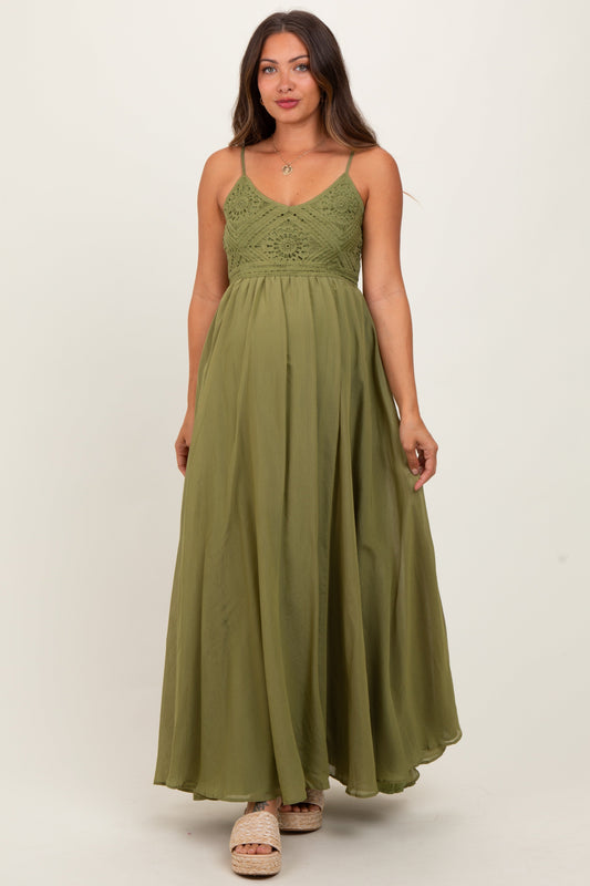 Green Contrast Gauze Eyelet Lace Detail Maxi Dress