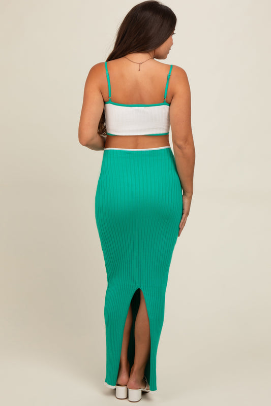 Green Contrast Stripe Wavy Trim Maternity Dress