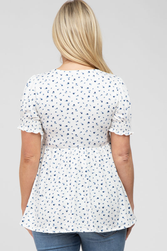 Ivory Ditsy Floral Smocked Sleeve Maternity Wrap Top