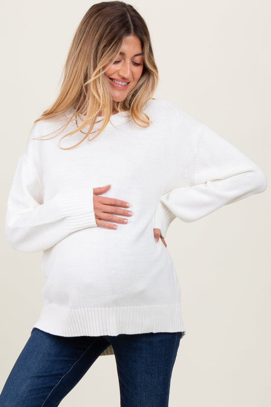 Ivory Round Neck Maternity Nursing Pocket T-Shirt
