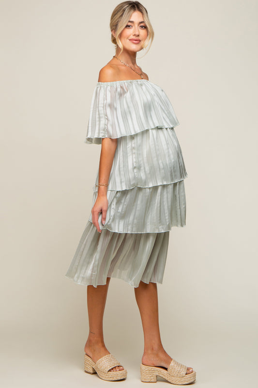 Light Mint Green Striped Layered Maternity Midi Dress