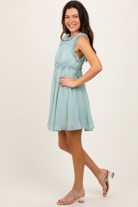 Light Olive Ruffle Detail Sleeveless Mini Dress