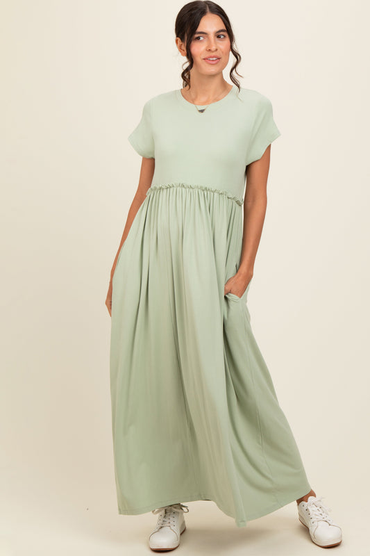 Light Olive Ruffle Trim Maternity Maxi Dress