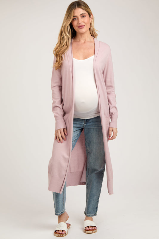 Light Pink Long Maternity Cardigan