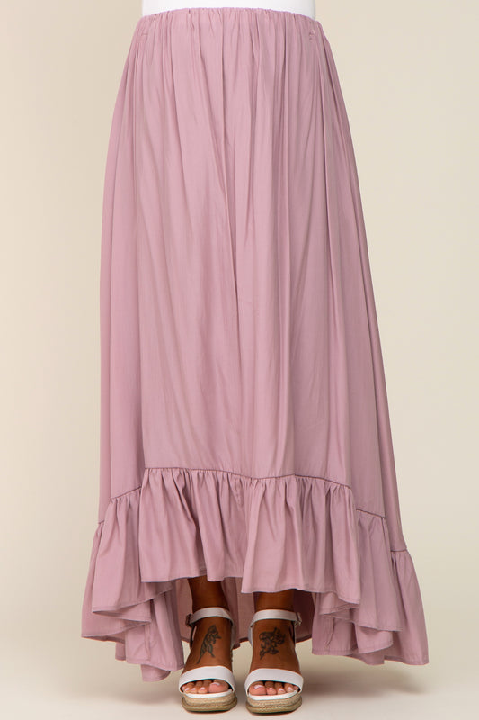 Mauve Ruffle Hem Maternity Maxi Skirt