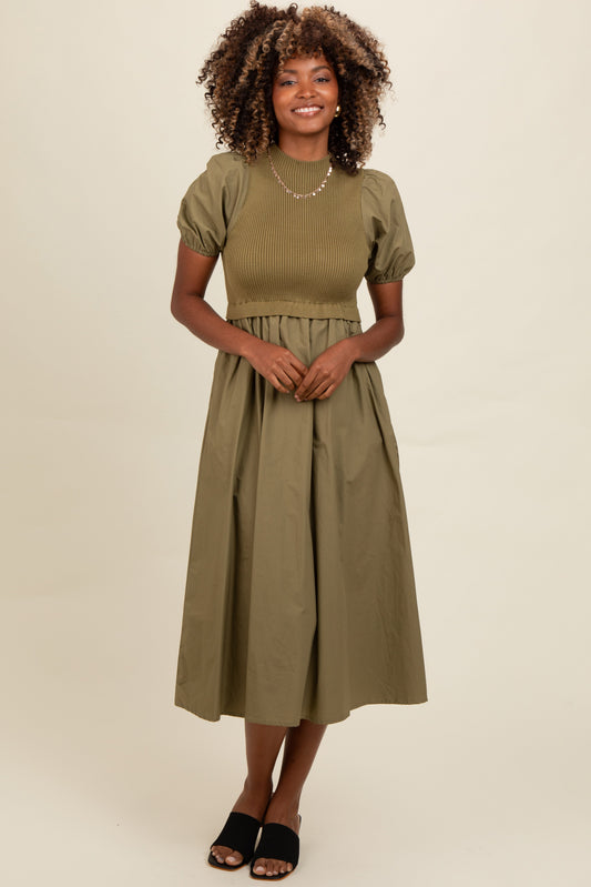 Olive Contrast Knit Bodice Maternity Midi Dress