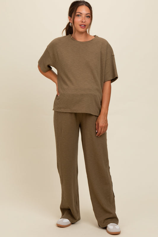 Olive Textured Knit Oversized Tee And Pants Maternity Set
