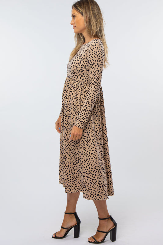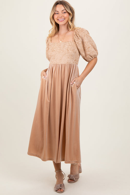 Tan Velvet Contrast Square Neck Maternity Midi Dress