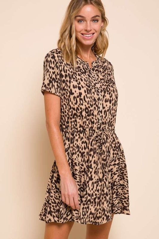 Tan Lace Up Back Puff Sleeve Square Neck Mini Dress