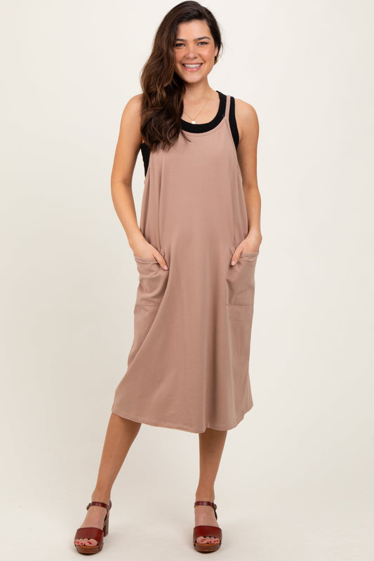 Taupe Knit V-Neck Cami Maternity Midi Dress