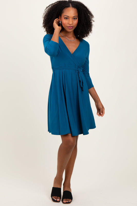 Teal 3/4 Sleeve Nursing Sash Tie Wrap Dress