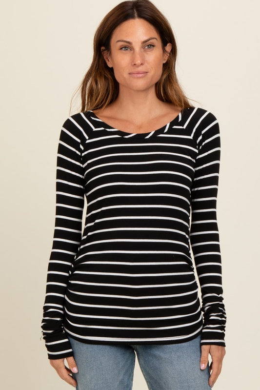 Black Striped Ruched Side Maternity Long Sleeve Top