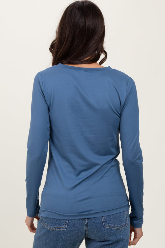 Blue Brushed Knit V-Neck Long Sleeve Maternity Top