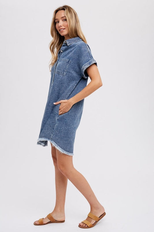 Blue Distressed Cut Hem Slim Straight Maternity Jeans