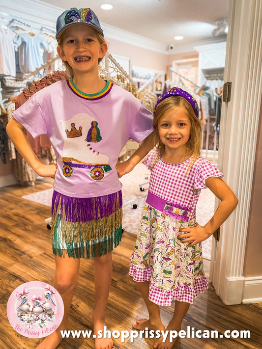 Queen of Sparkles Mama Beige & Lavender Polka Dot Sparkle Pants