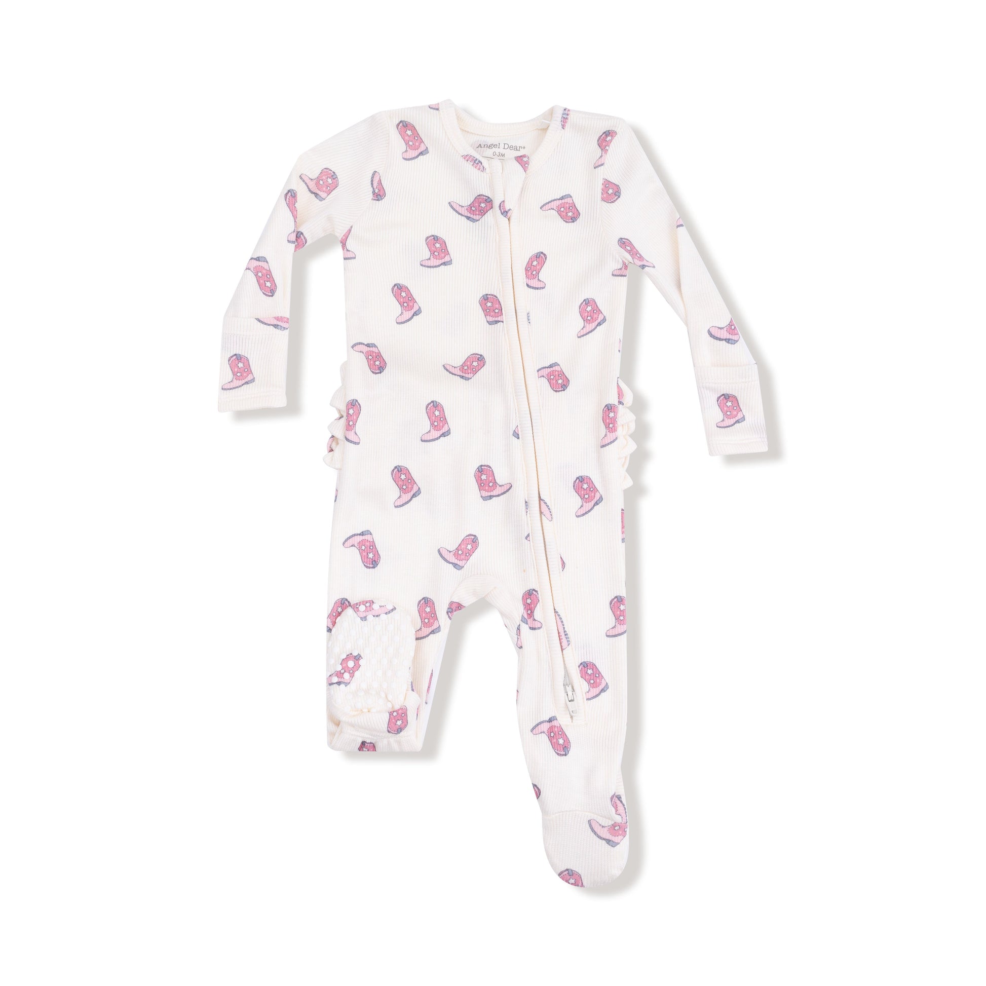 Our Ruffle Back Zipper Footie makes changing your baby a snap! (Or as we like to say, a zip!) Made with luxuriously soft ribbed modal fabric and adorned with Angel Dear's signature prints, this footie brings endless oohs, aahs, and smiles. And the sweetest surprise? An adorable ruffle back detail for extra charm!