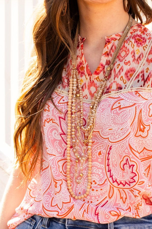 This necklace a statement piece inspired by the vibrant energy and sunshine of Miami. It features five strands of mixed gold beads, exuding opulence and sophistication. With its bold design and eye-catching shimmer it's sure to elevate your look and bring a touch of South Beach style wherever you go.