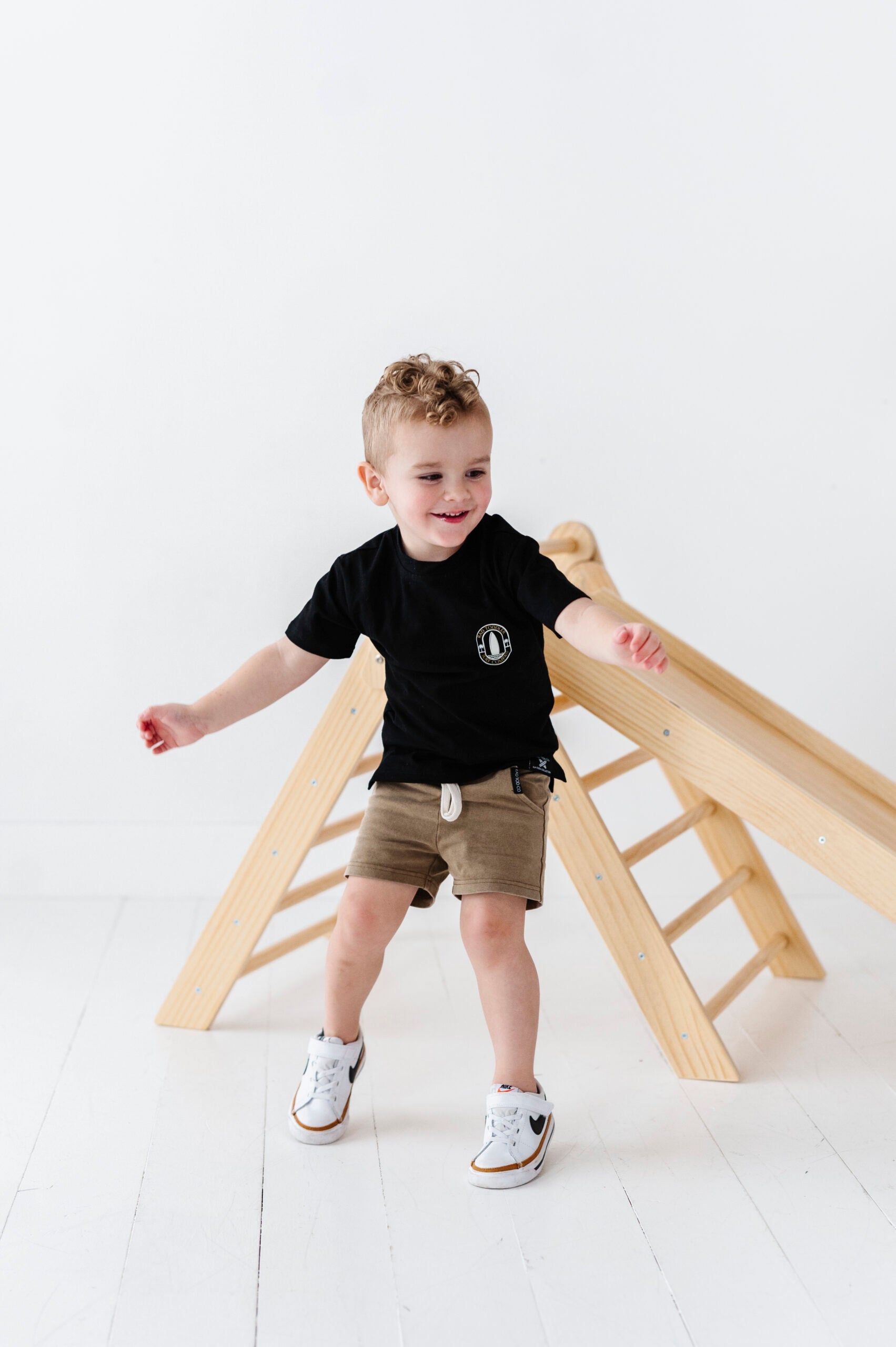 A perfect cotton (95%) and spandex (5%) blend of the dreamiest acid wash toddler shorts. Fit is true to size and above the knee. Waist is adjustable.