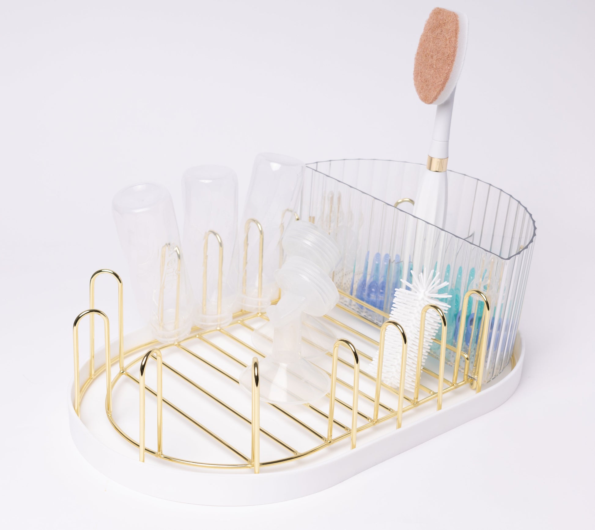 The Airess Drying Rack and Tulip Prong Set holds a full day’s worth of baby bottles, nipples, and breast pump parts.