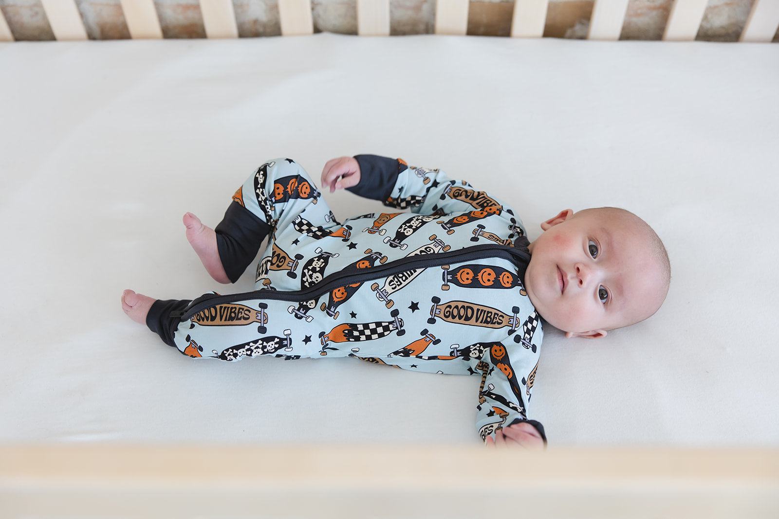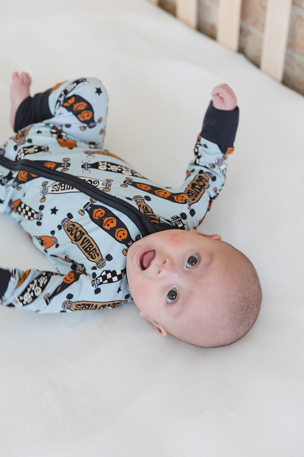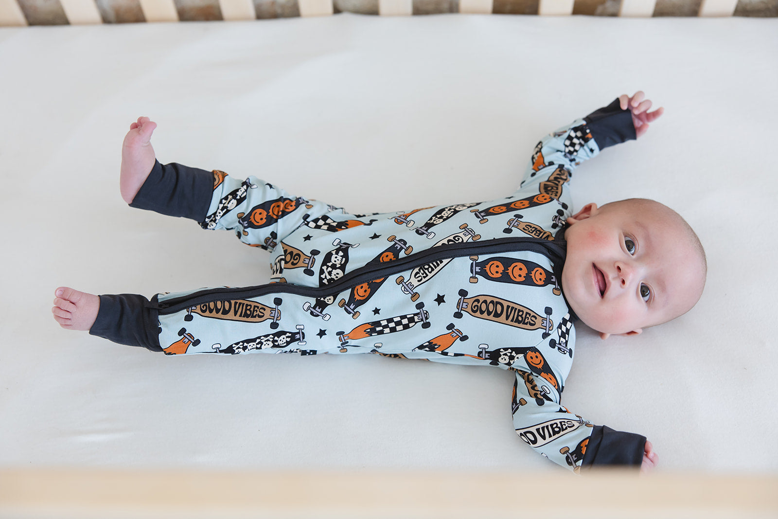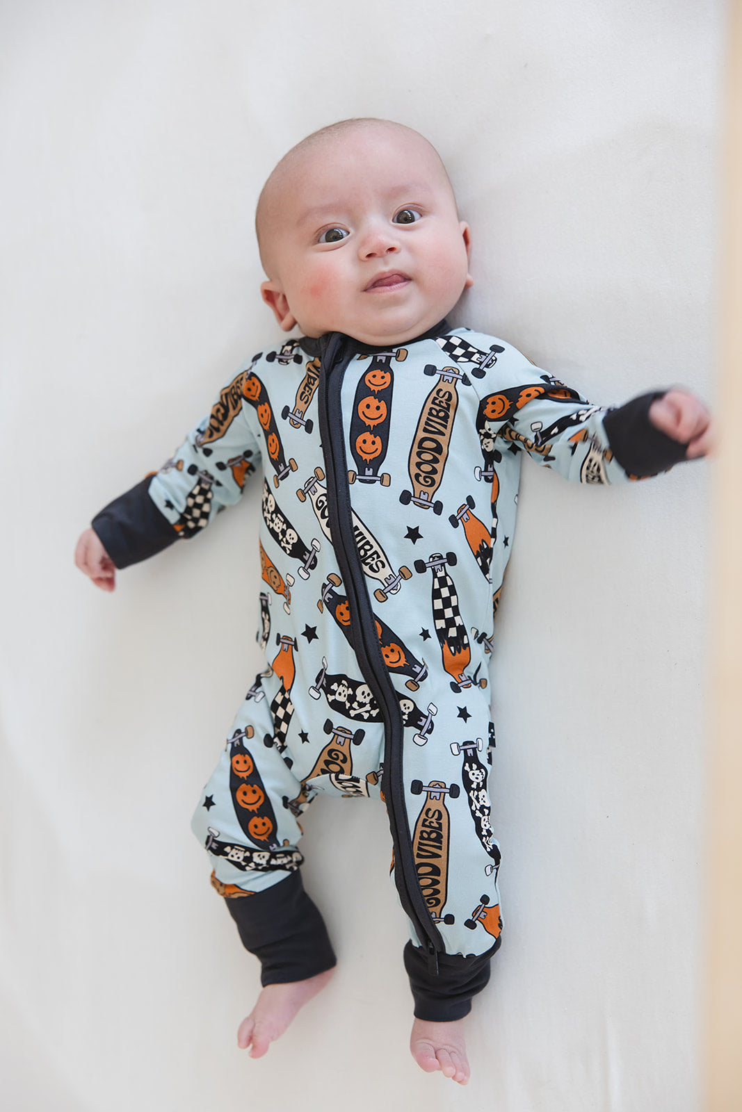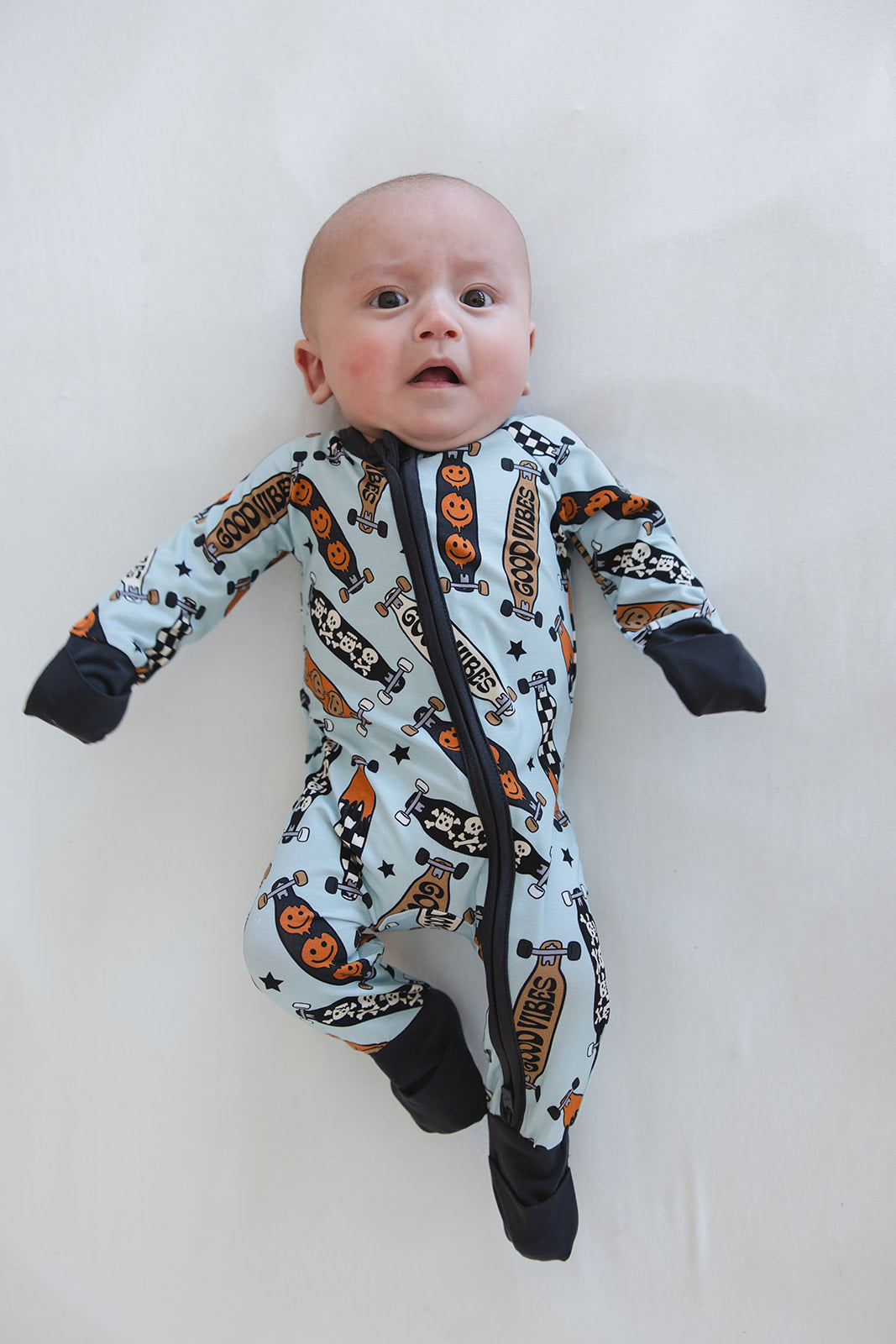 With fold-over wrist and ankle cuffs for added comfort and a double zipper for effortless diaper changes, our zippies are a game-changer for busy parents. The tagless design guarantees irritation-free wear, making them ideal for all-day lounging and play.