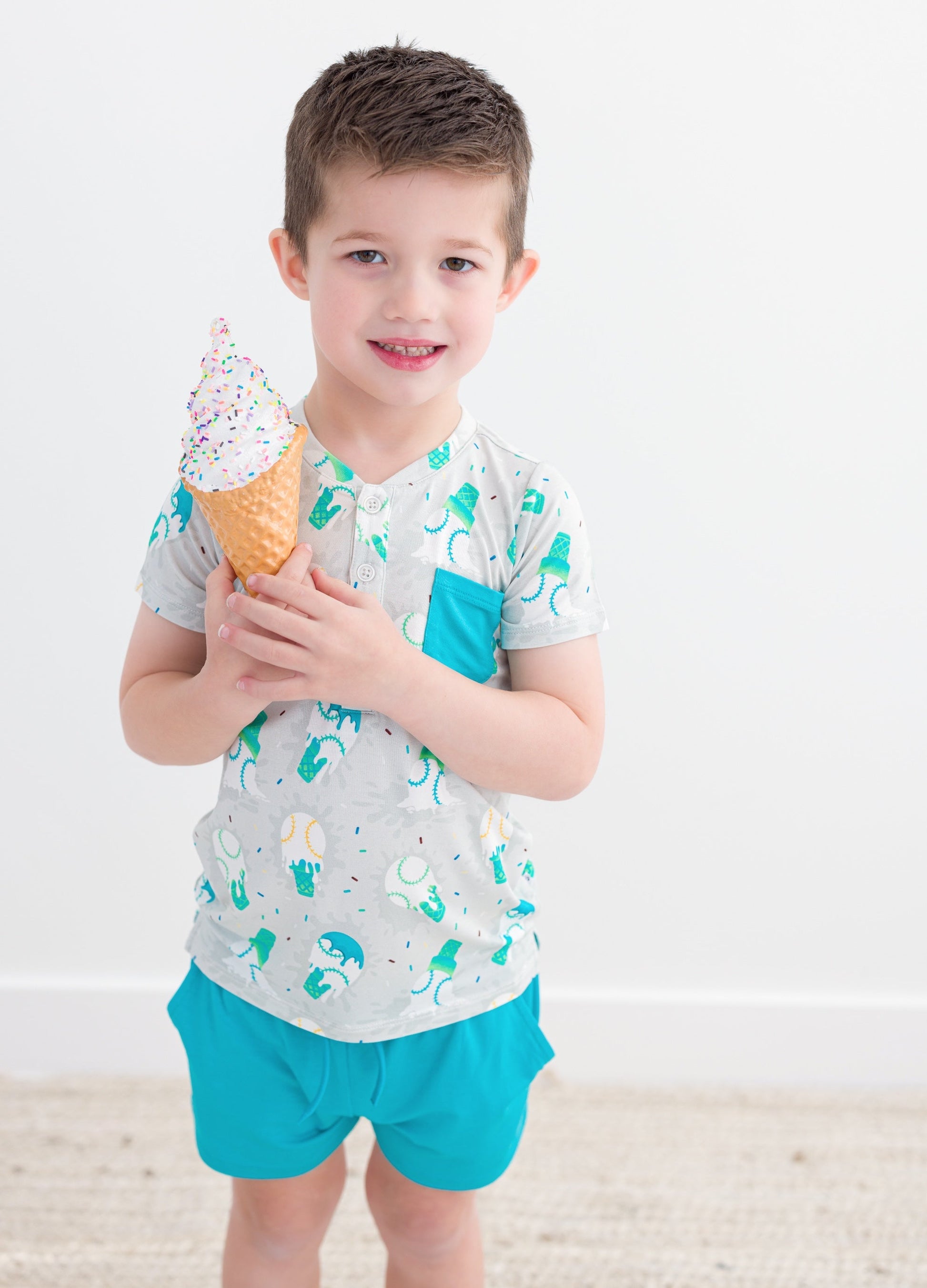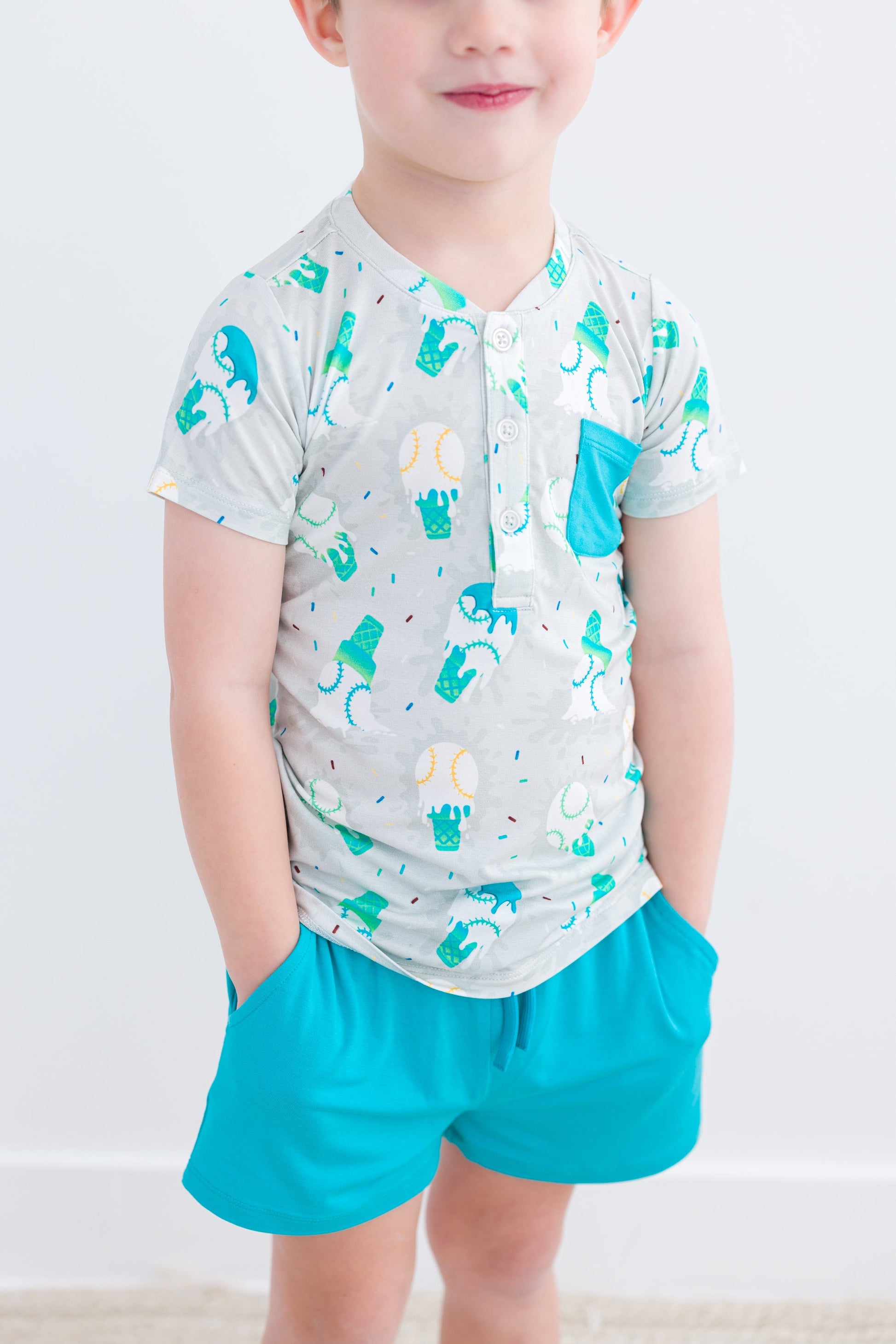 Designed for comfort and style, this baseball-themed shirt and short set is the ultimate summer essential for your little one. Lightweight and breathable, the viscose from bamboo fabric ensures they stay cool and comfy all day. The added pocket detail brings an extra touch of charm, making this set perfect for wearing together or mixing and matching with other wardrobe pieces for the cutest outfit of the day!