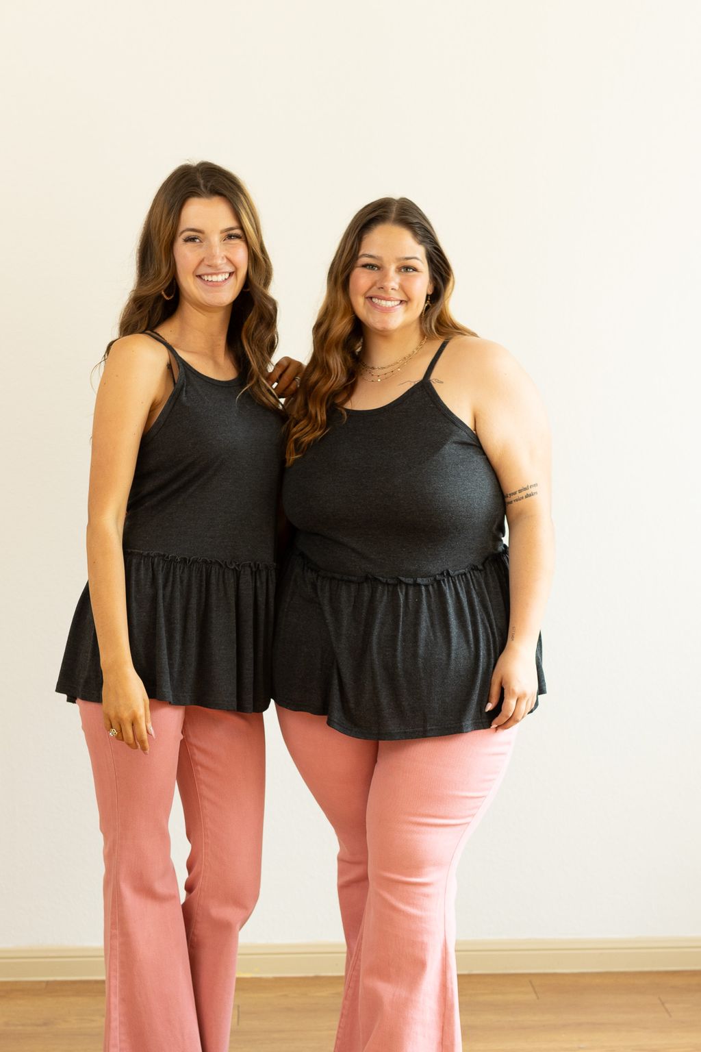 Effortless elegance meets casual comfort with our Grey Tank featuring a charming Ruffle Waist detail. Perfect for adding a touch of flair to your everyday look.