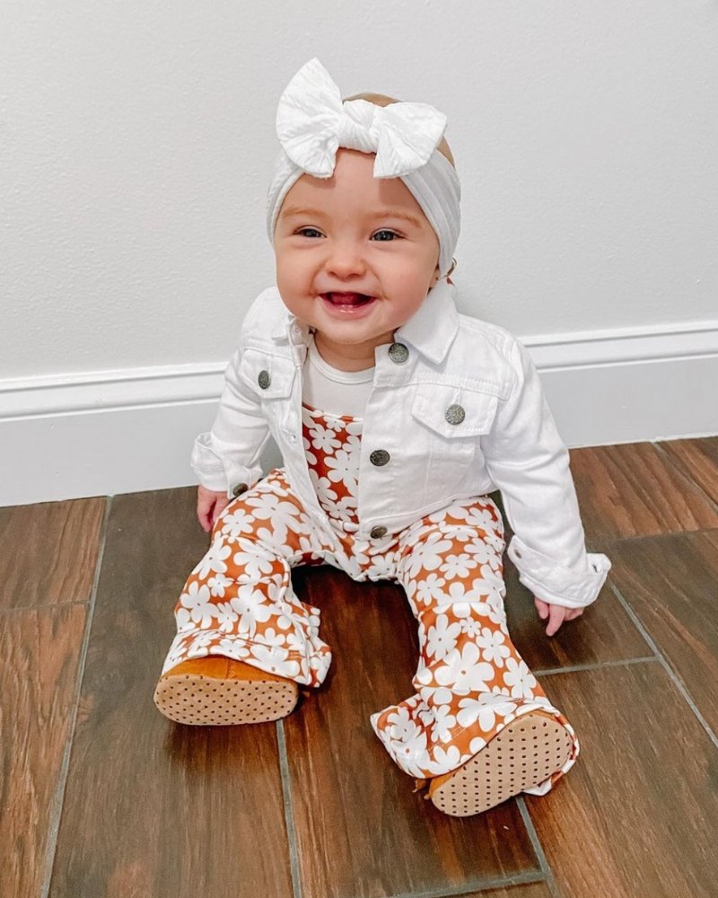 Perfect for your little flower child! This fan favorite jumpsuit features a fun and funky exaggerated retro bell bottom pant in the perfect retro floral print. Our Andi pleated bell bottom jumpsuit is the perfect way to slay this season. With halter neckties that grow with her this sweet jumpsuit is bound to be your new go-to!