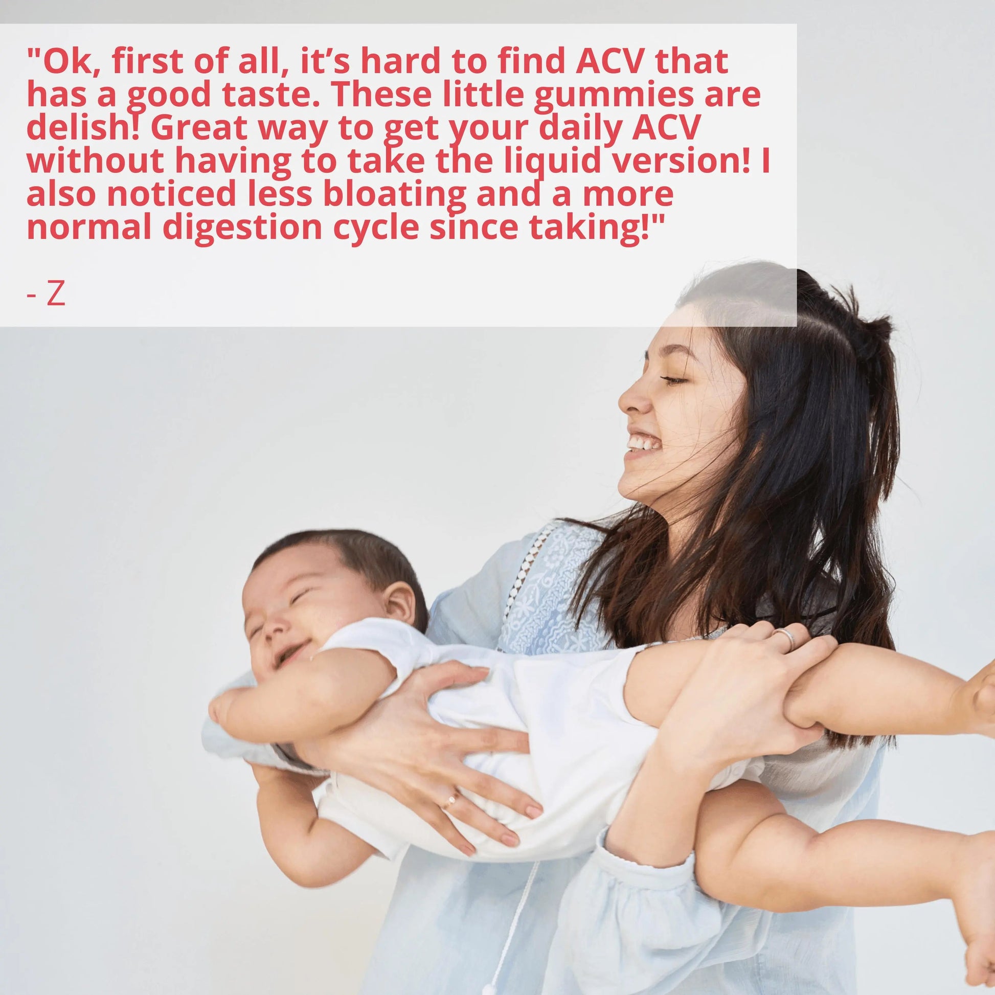Our vegan and gluten-free formula helps breastfeeding moms enhance their energy, support healthy digestion, and manage weight safely. Whether you're looking to boost your energy while breastfeeding or simply seeking a natural remedy, our apple cider vinegar gummies with the Mother offer the perfect solution.