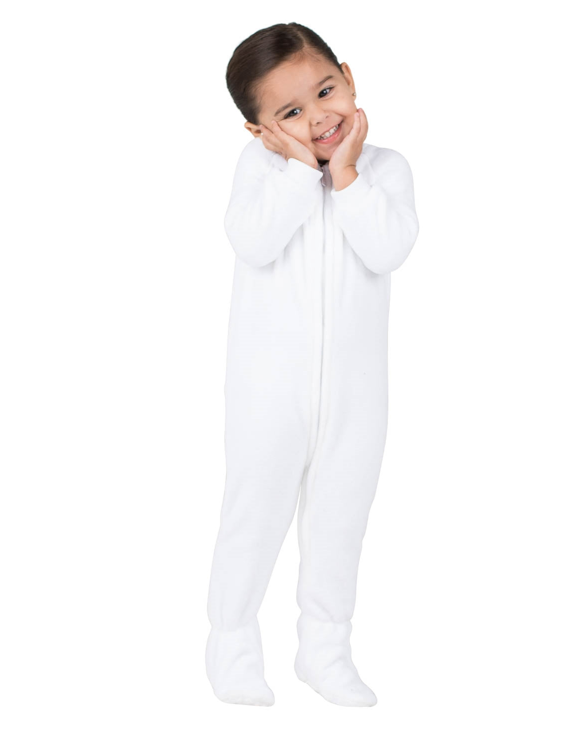 Bright as fresh fallen snow, these pure white footie pajamas are a favorite for babies! Unisex design and soft polar fleece provide both a comfortable cut and feel for infant boys and girls! Great for sleeping, lounging around on chilly days, and as a costume base for the creative! High quality, durable and fun!