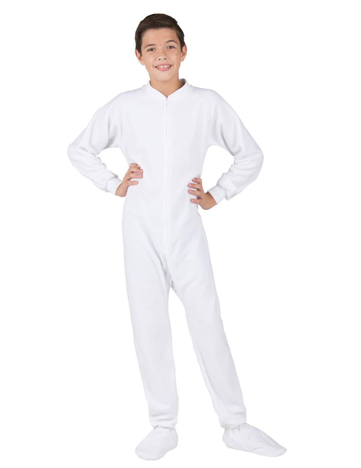 Bright as fresh fallen snow, these white footed pajamas are a favorite for both boys and girls! Unisex design and soft polar fleece provide both a comfortable cut and feel. Great for sleeping, lounging around, and as a costume base for the creative! High quality, durable and fun!