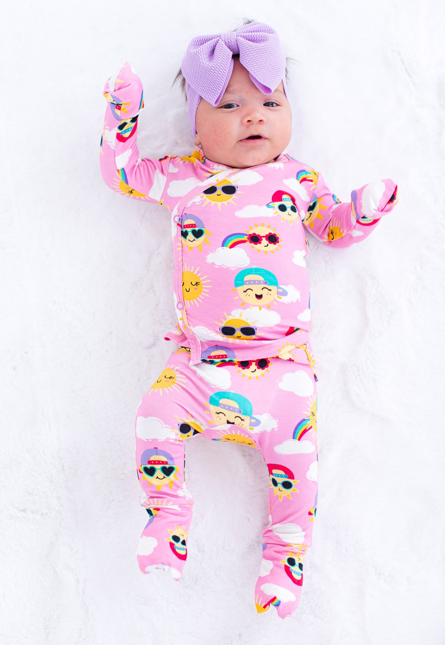 This luxurious 2-piece set is the ideal apparel for your precious newborn through three-month-old. Boasting an exquisitely soft composition of viscose from bamboo and spandex for a snug yet supple fit, this kimono design will envelop your little one in unparalleled comfort and style!