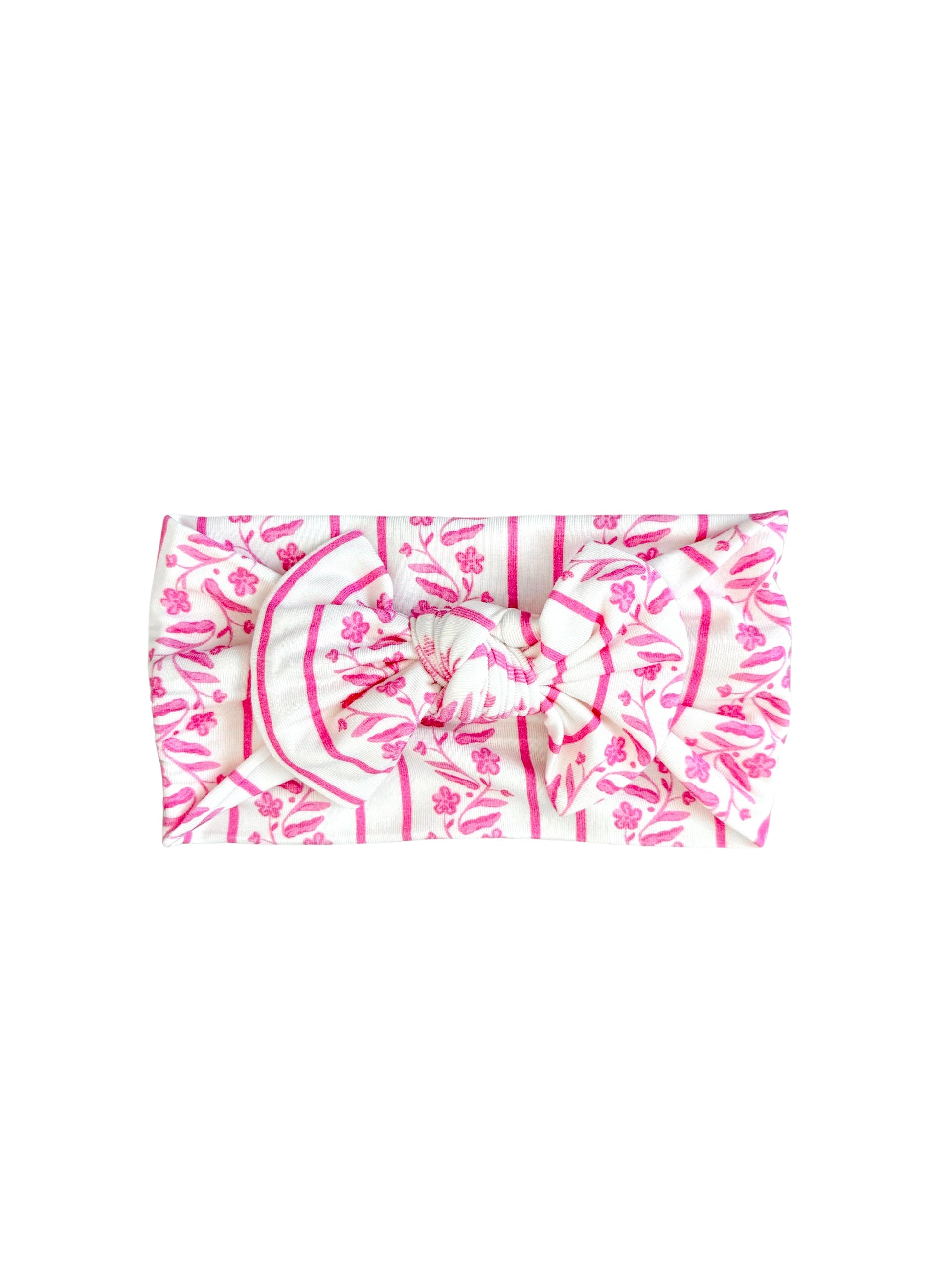 Add a touch of sweetness to your little one’s look with the Aurora Knotted Bow Headband. Made from soft bamboo fabric, it features a charming pink floral print that pairs perfectly with the matching baby gown. Ideal for newborn photos or announcement pictures, this headband brings playful style and gentle comfort to every special moment.