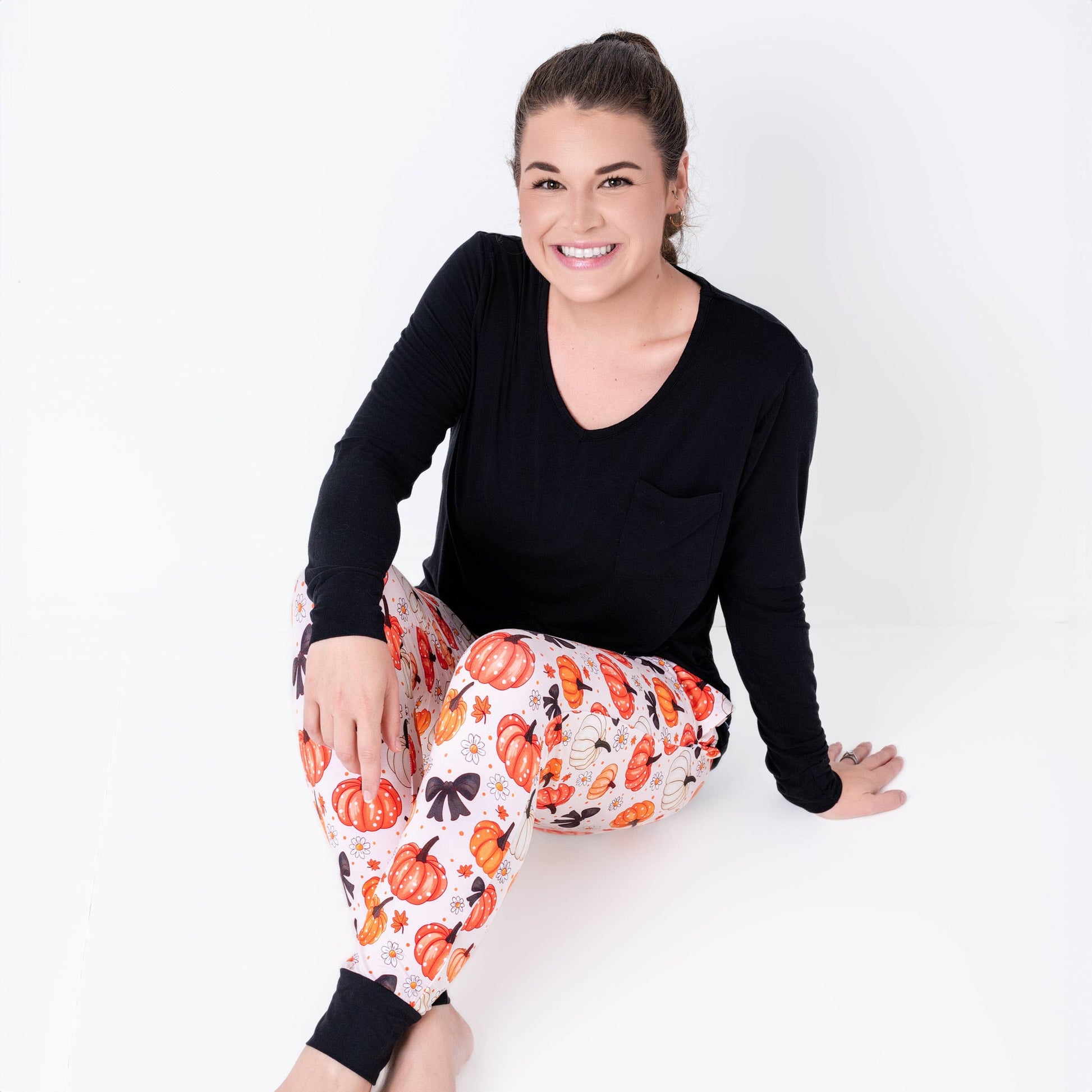Introducing our luxurious buttery soft PJ unisex Autumn joggers for teens & adult, crafted with premium bamboo for ultimate comfort. Pair perfectly with our Midnights V Neck Top. Perfect for cuddling and lounging, because we deserve to be comfy too! These unisex joggers are perfect for everyone in the family with cuffed ankle joggers featuring a functioning drawstring for the perfect fit, pockets & a must-have addition to your lounge wardrobe. Treat yourself to the coziness you deserve!Â