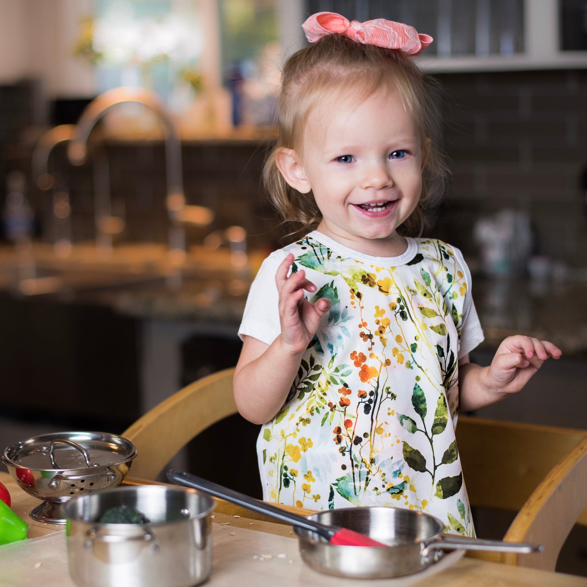 This best-selling “Bapron”, also known as a bib-apron hybrid, full-coverage bib, smock, or apron, is designed for comfort and safety. Because of their comfortable, secure-fitting horizontal ties and their full-coverage design, Baprons are the perfect companion for mealtime, art, and sensory play!