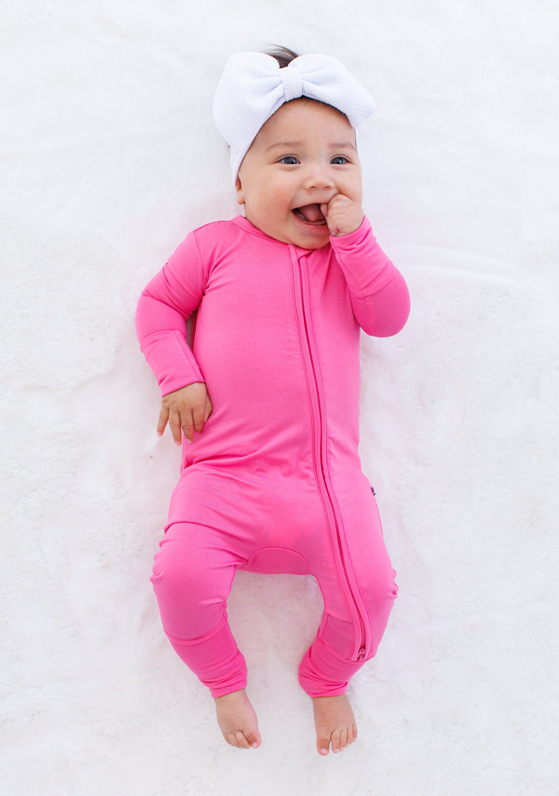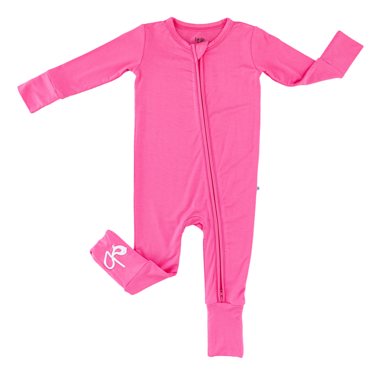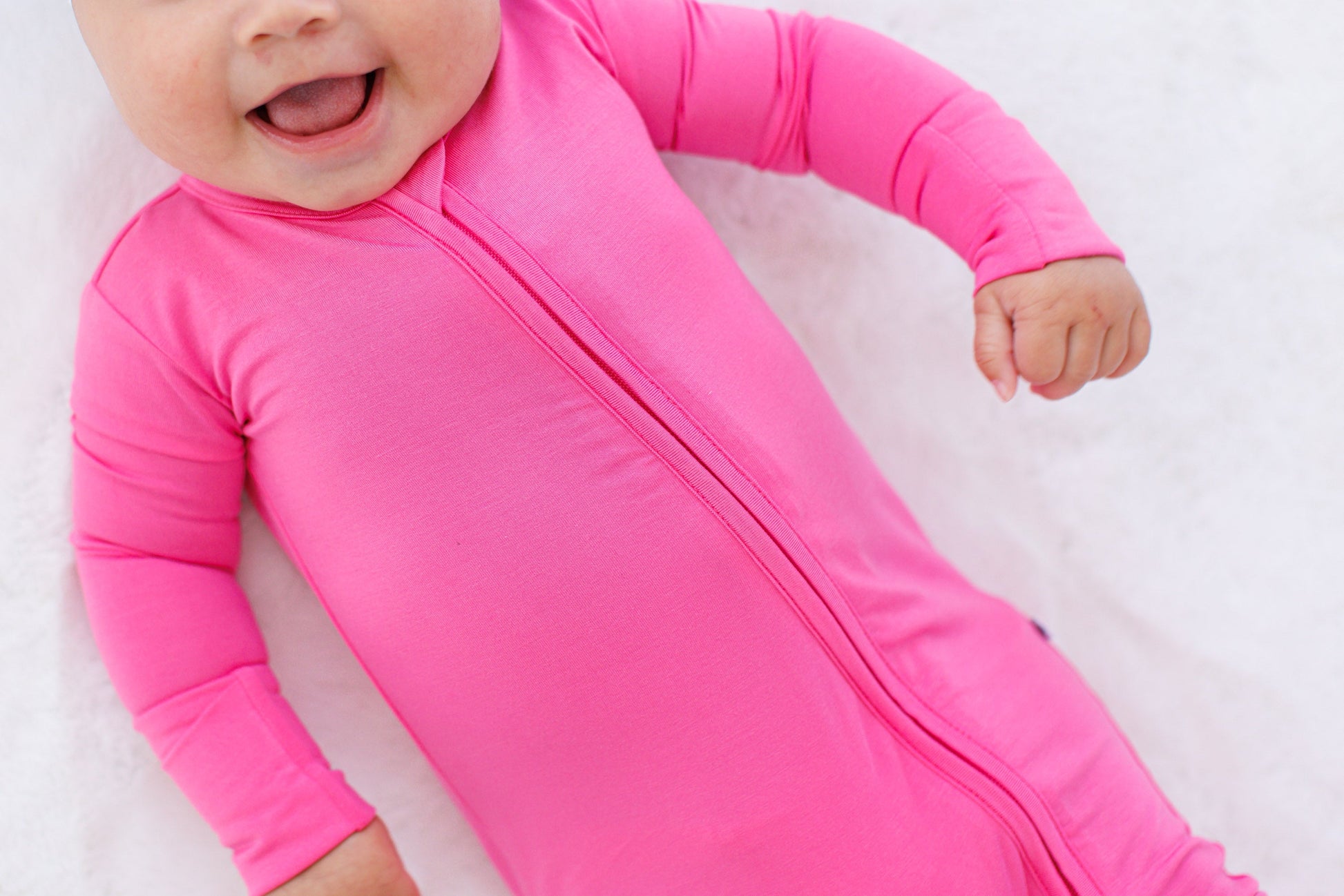 Romper or footie? Why not have both in one piece? You will love the option and ease of turning your romper into a footie! Our 2-way zipper feature makes diaper changes a breeze. Printed on irresistibly soft viscose from bamboo with just a touch of spandex. The perfect combination of cuteness and comfort!