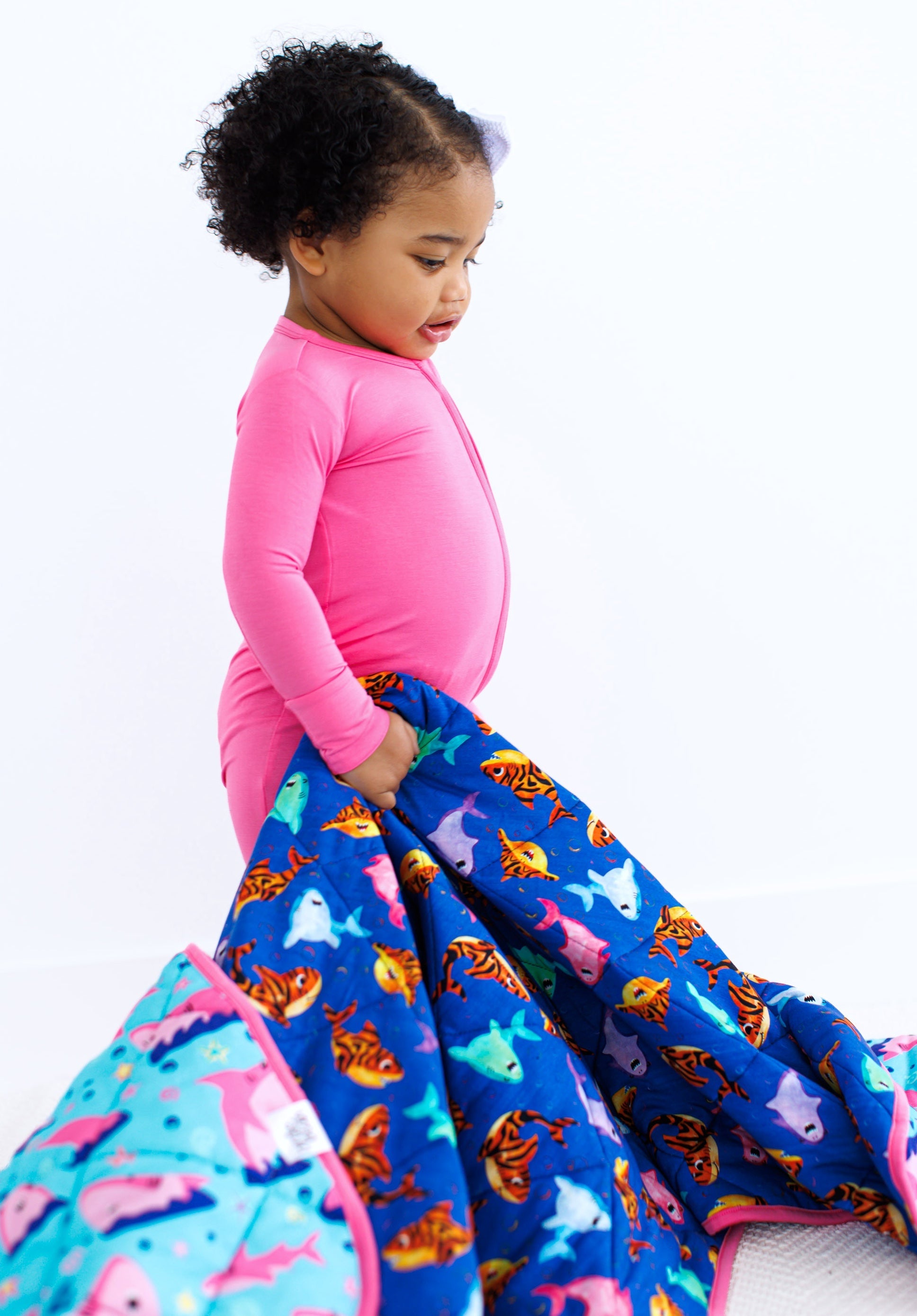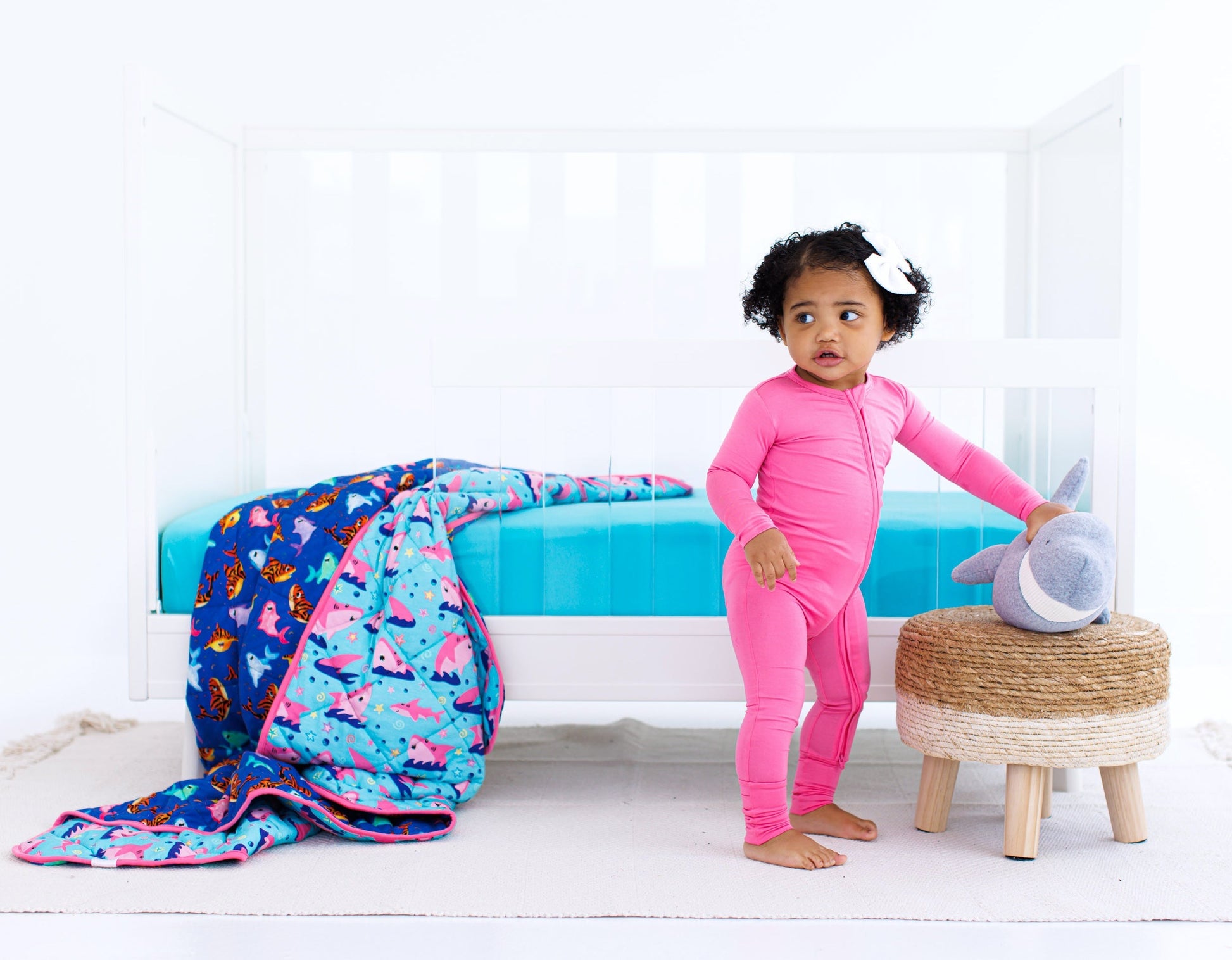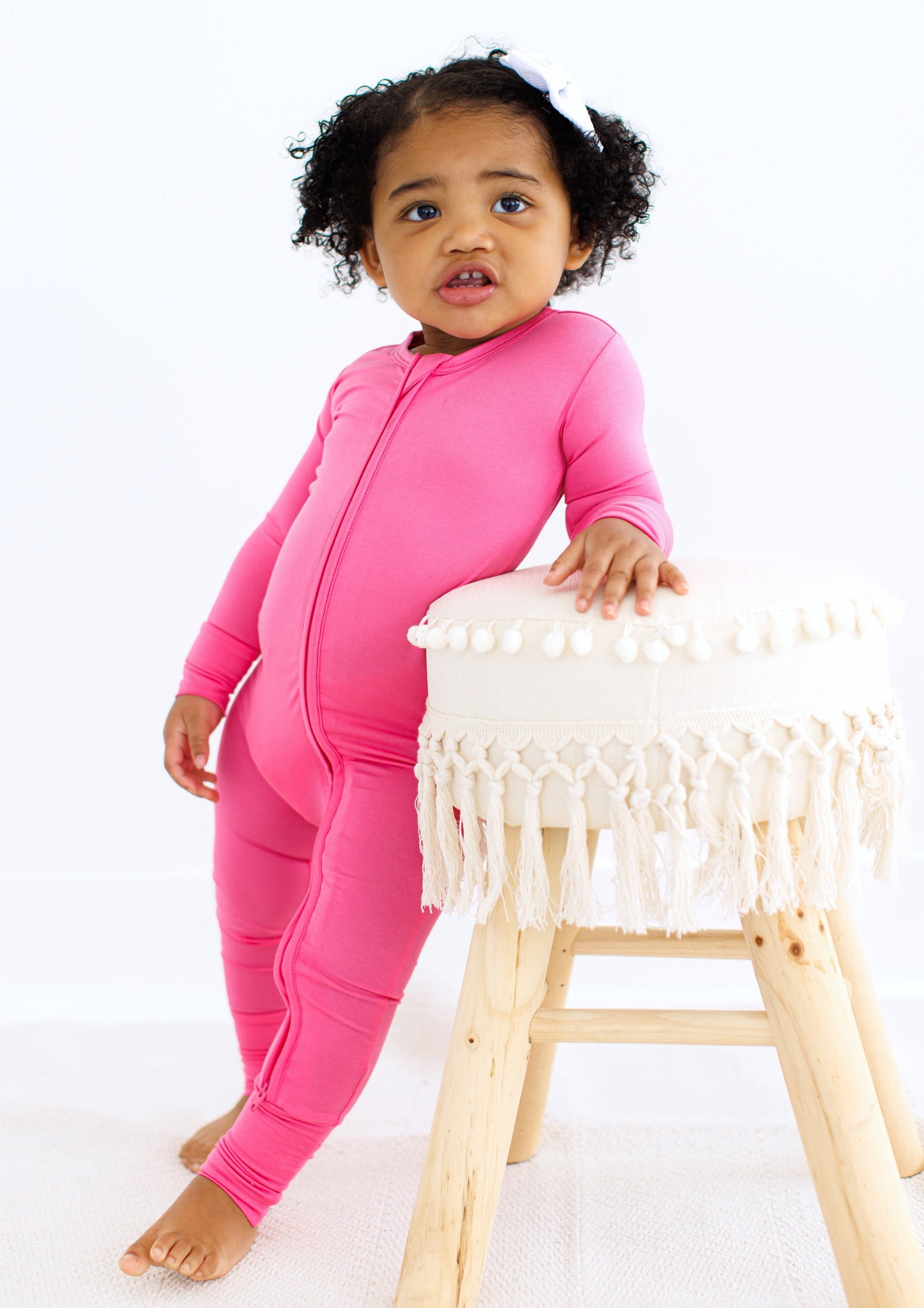Romper or footie? Why not have both in one piece? You will love the option and ease of turning your romper into a footie! Our 2-way zipper feature makes diaper changes a breeze. Printed on irresistibly soft viscose from bamboo with just a touch of spandex. The perfect combination of cuteness and comfort!