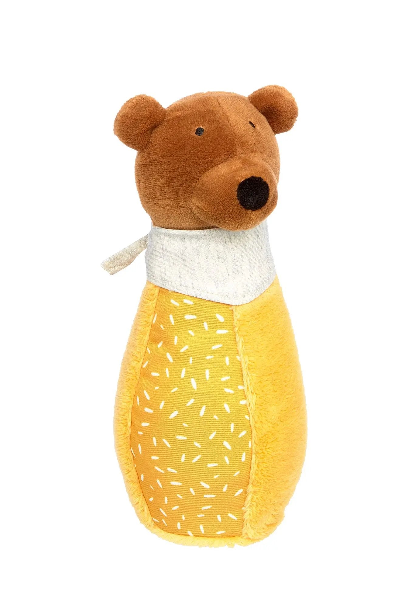 All four in one go, bravo! Enthusiastic parents tell us that this bowling set for babies and toddlers is sheer genius. Easy to pack on any trip and loved at first sight thanks to four adorable animal pins (bunny, sheep, bear and fox), it caters limitless amusement from grabbing the pins to throwing or rolling the ball with its rattling sound.