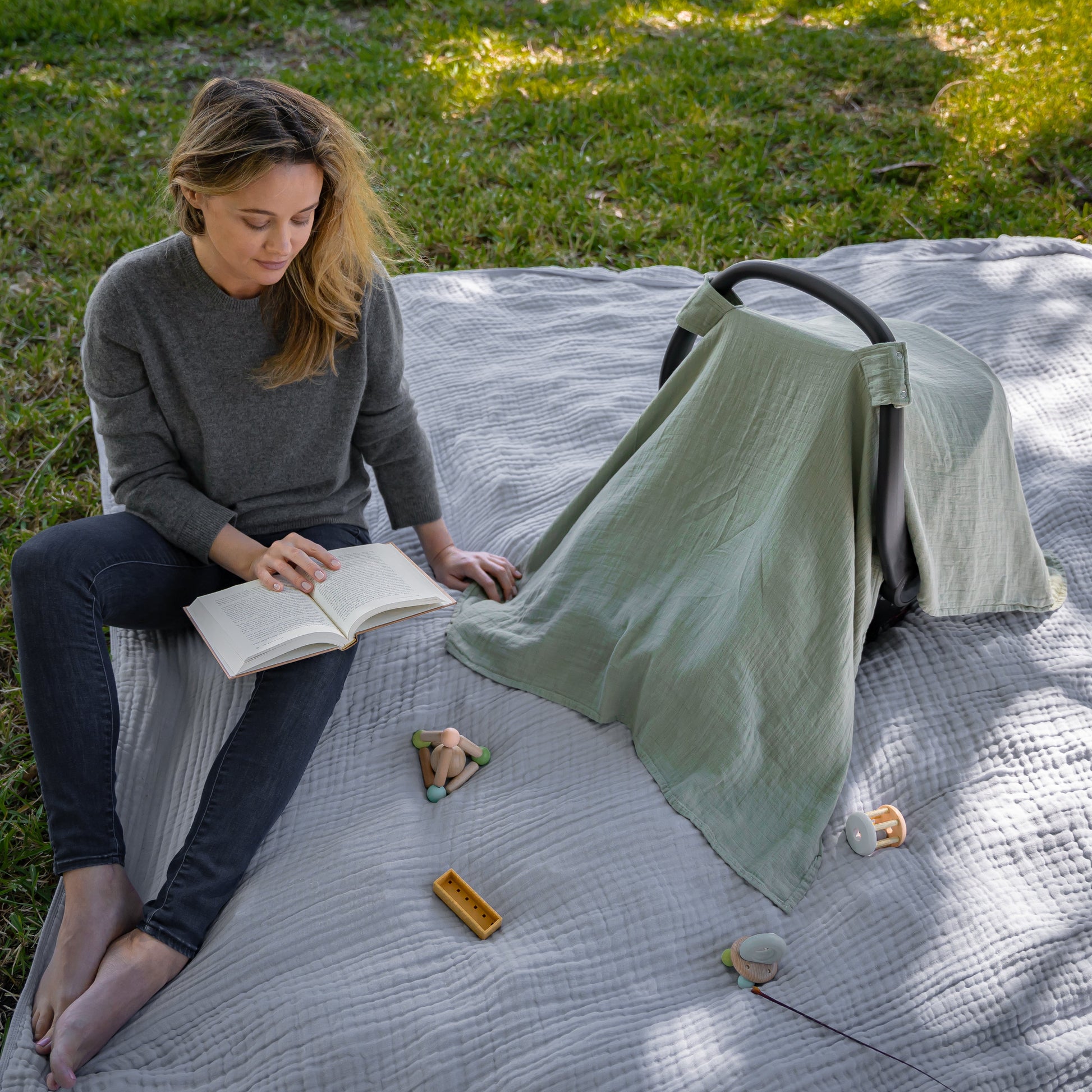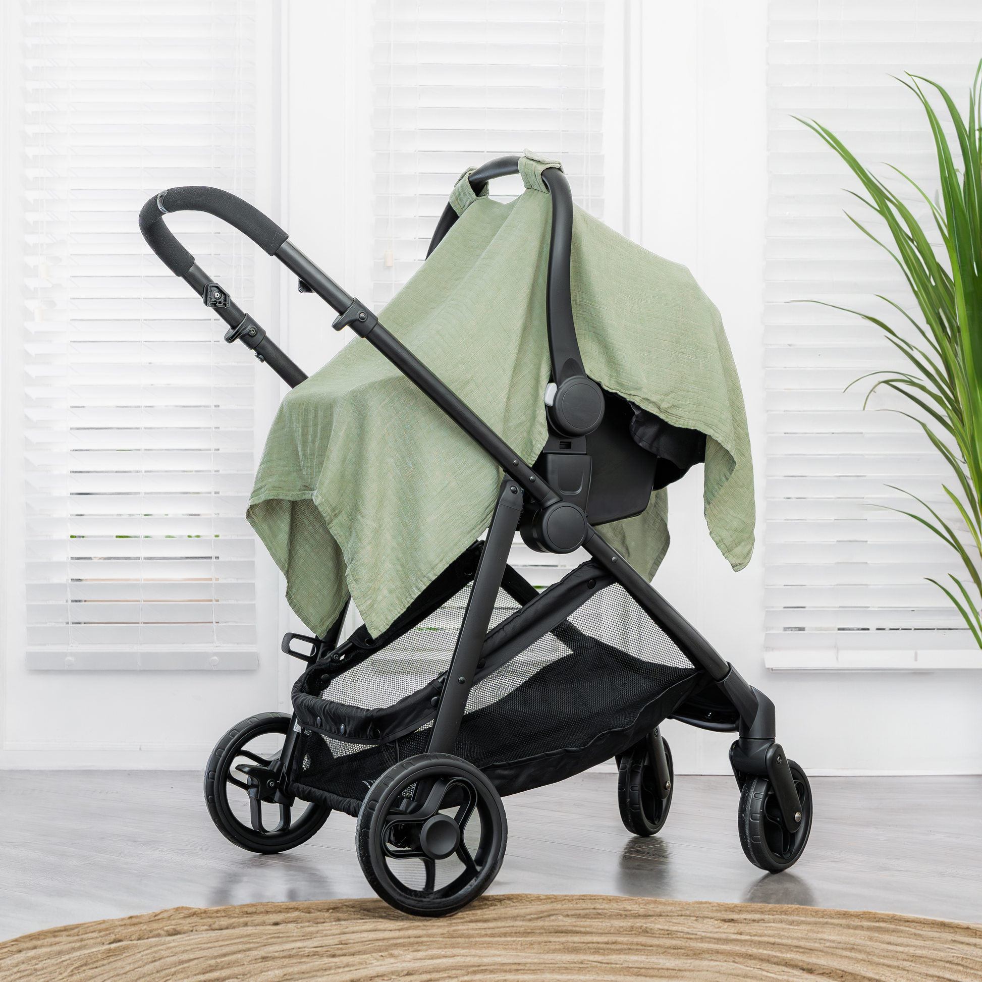 Baby Travel Gear Protection: Our muslin car seat cover offers full coverage, shielding your baby from harmful UV rays and pesky insects, providing peace of mind during your travels.