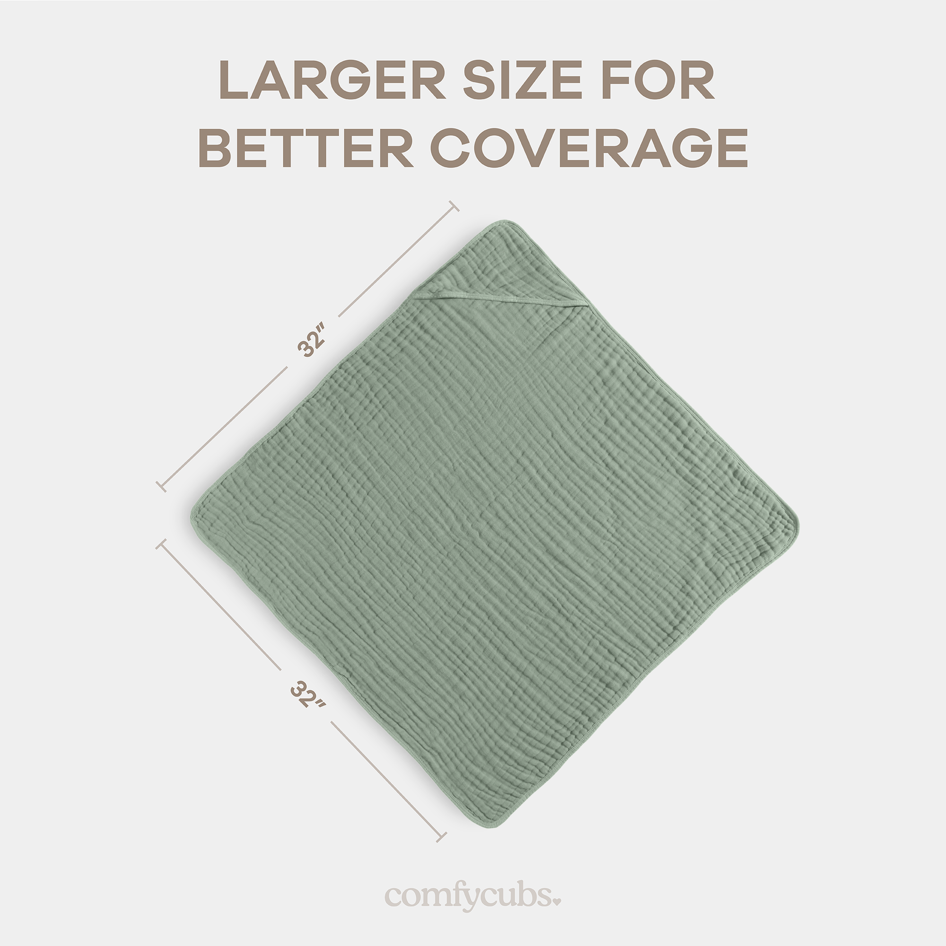 Generous Size for Growing Babies: The Comfy Cubs hooded towel measures a Large 32 x 32 inches, ensuring excellent coverage from newborns to toddlers. Its larger size offers plenty of room for your baby to grow into, providing lasting comfort and warmth as they transition through each stage of their early years.
