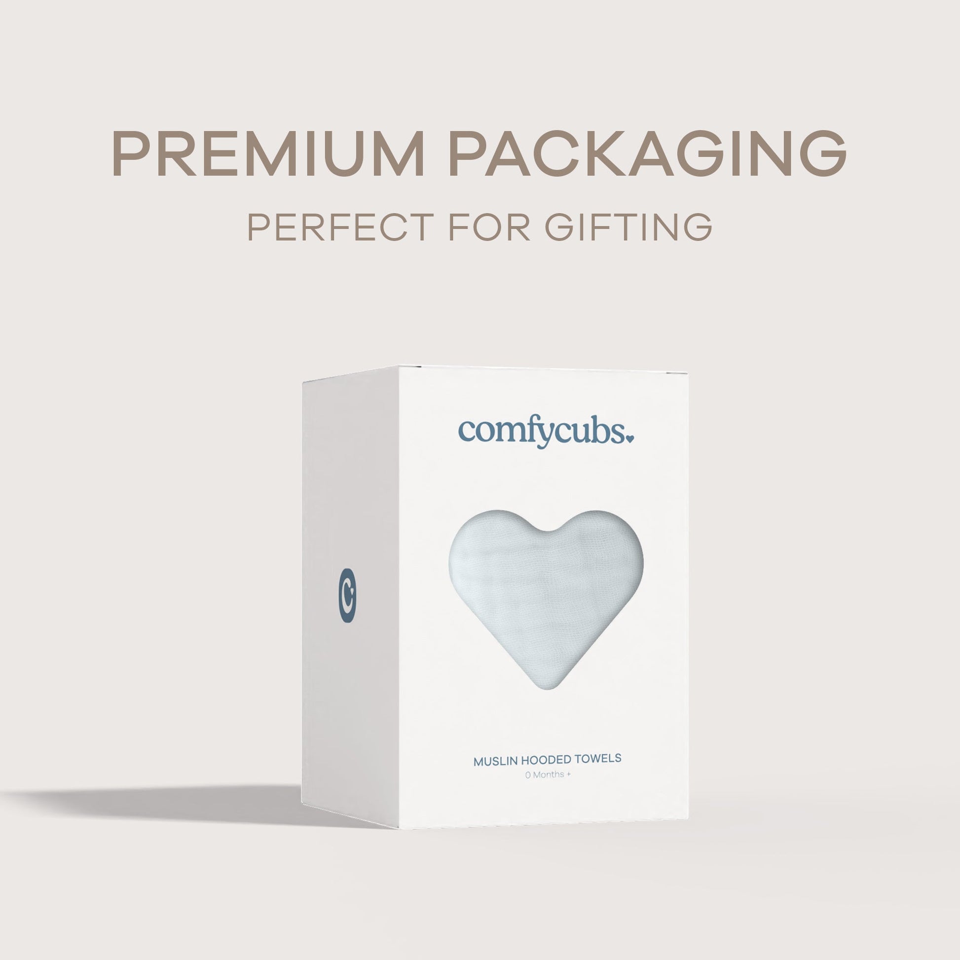 Keep your baby comfy after a warm bath by wrapping them in a plush hooded towel from Comfy Cubs that’s designed for better coverage and softer support. After you’ve given your baby or toddler a bath you want them to wrap them in a towel that keeps them warm and dries them off, but you don’t always like managing an overly large towel that’s meant for adults. That’s why we created the Comfy Cubs Hooded Towel just for them. Offering a softer, plusher, more comfortable design our muslin cotton towels for kids are gentler on sensitive skin and absorb water more quickly so they can stay warm and dry beneath. Great for snuggling them up after bath time or drying off after a fun day at the pool, get your baby one today and give them a nice, comfy cuddle all over.