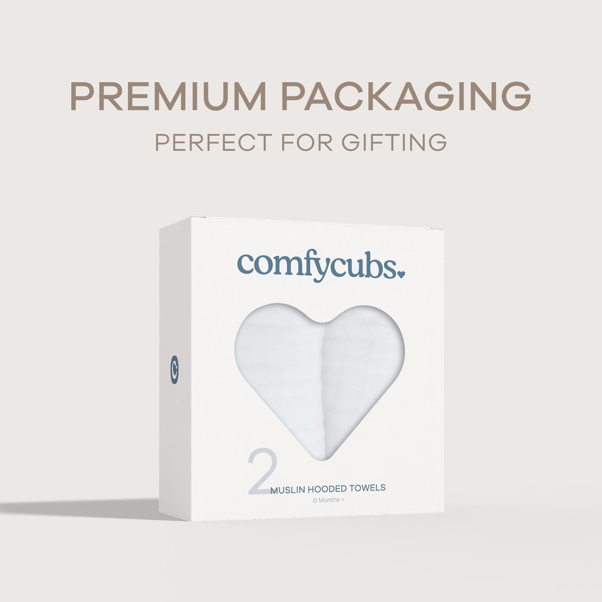 Larger Size for Better Coverage – Comfy Cubs muslin cotton hooded towels are a bigger 32 x 32 inches in size which helps support newborn infants and growing toddlers, so they can enjoy better coverage from their heads to their little bottoms.