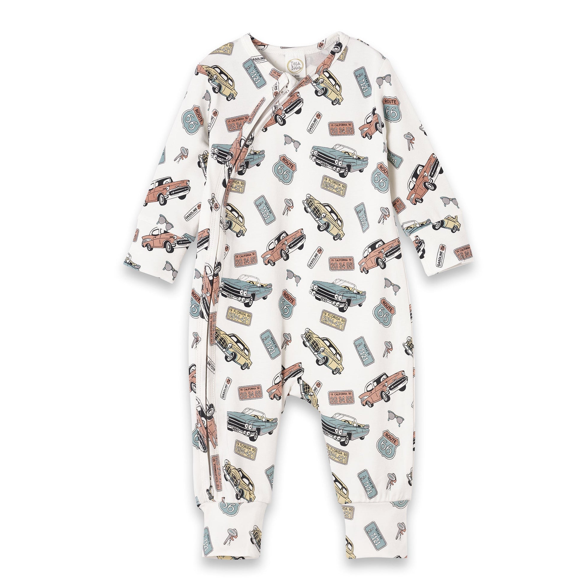 Baby Zipper Romper – Bamboo Route 66 Classic Car Print