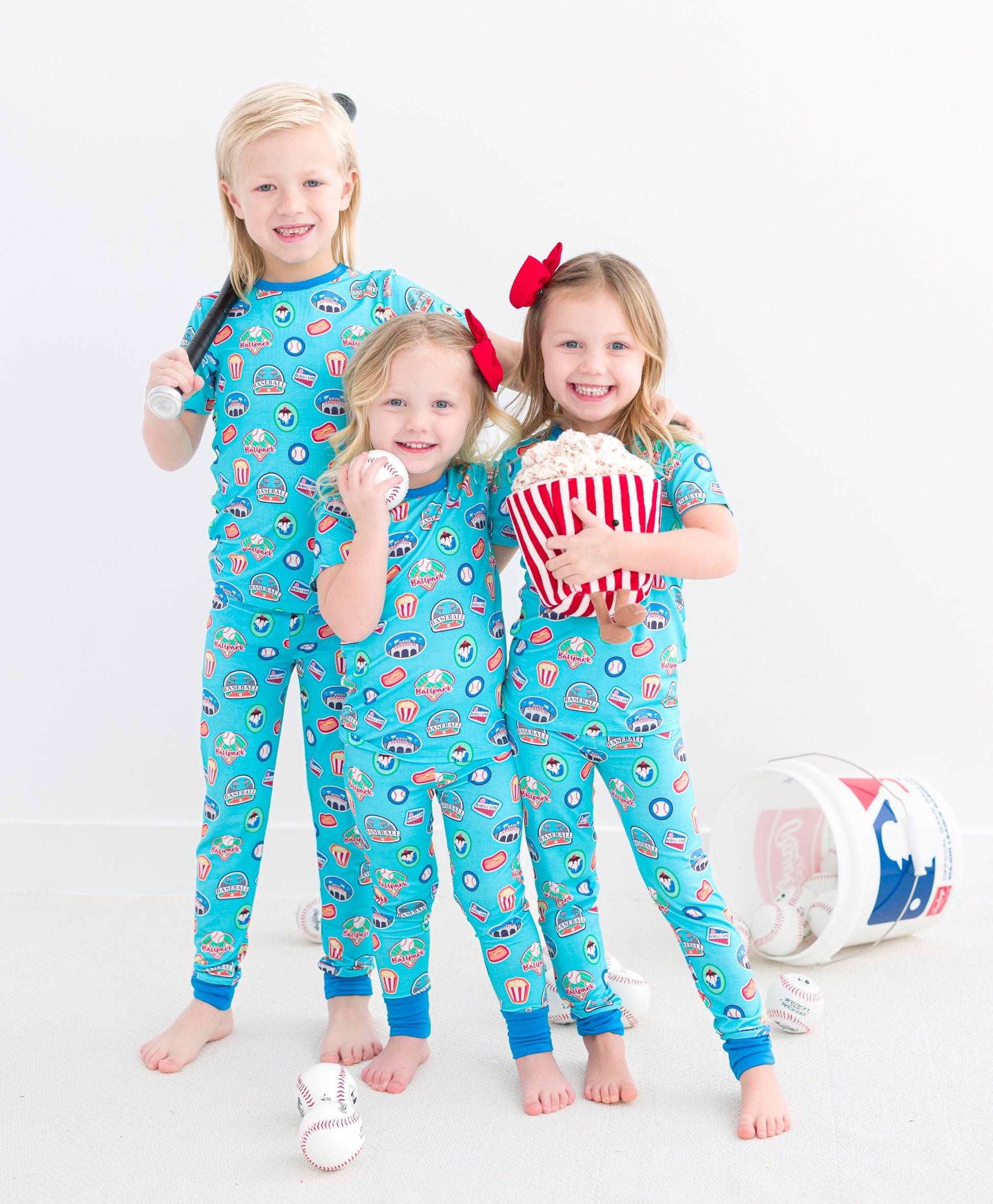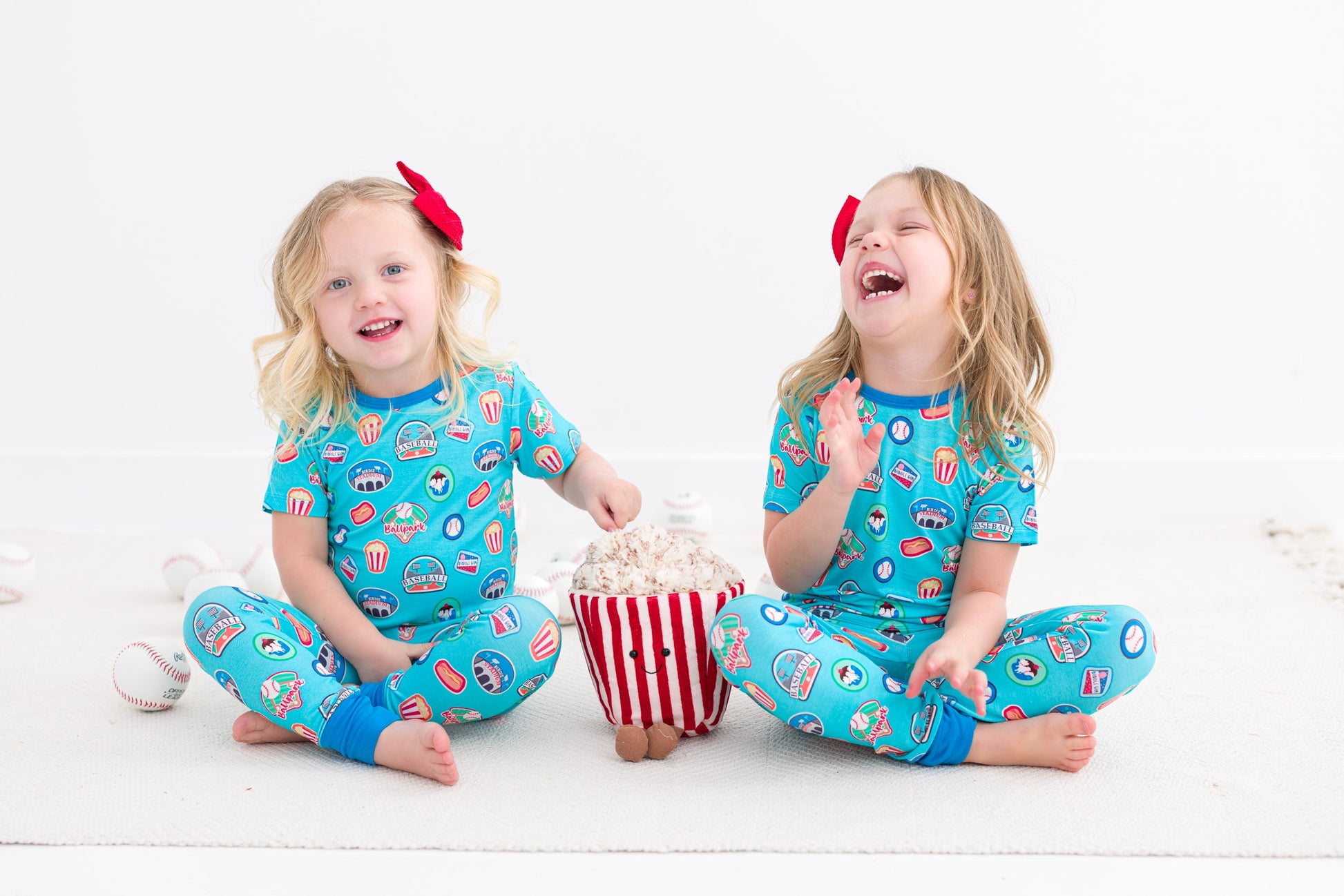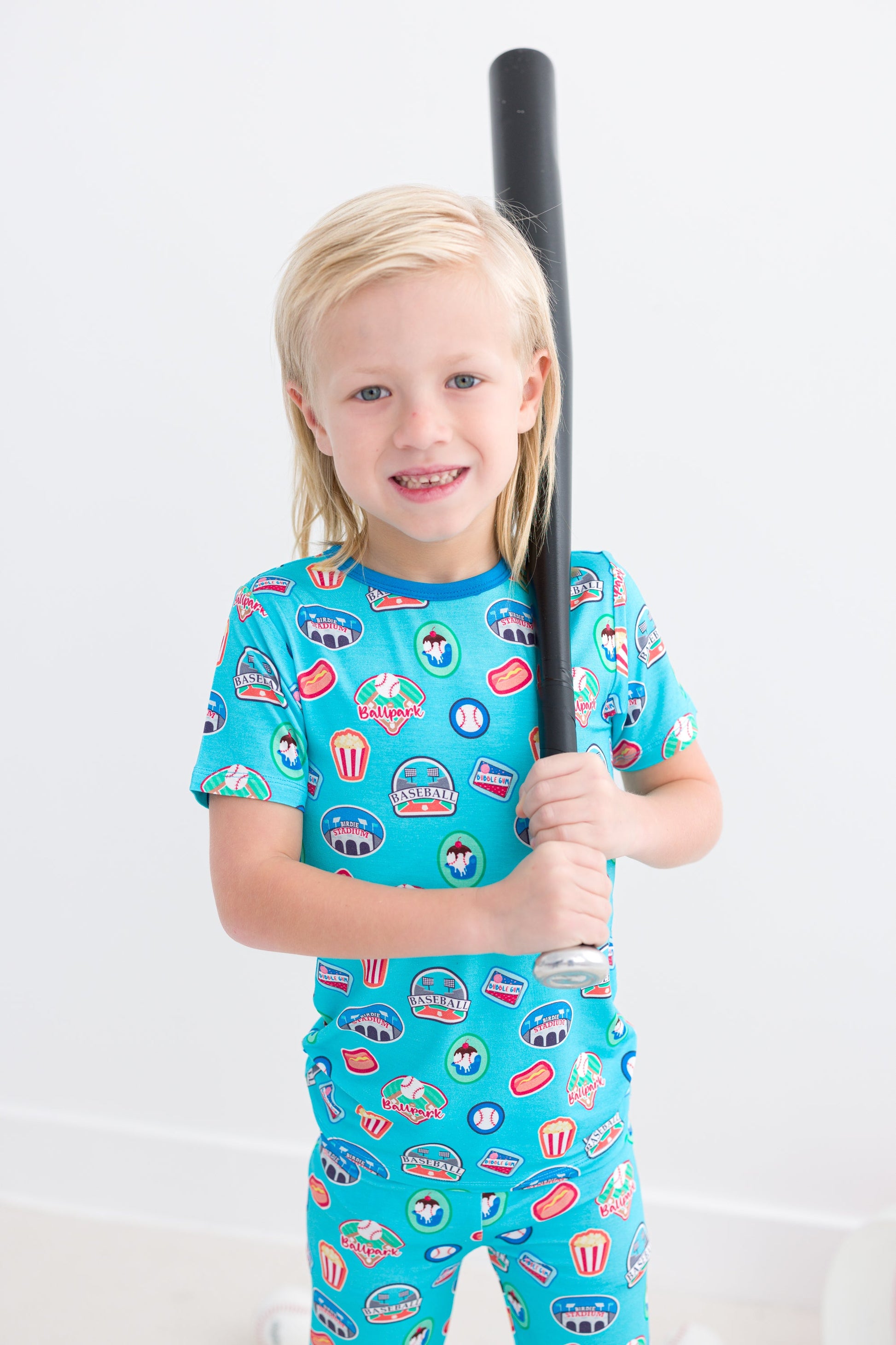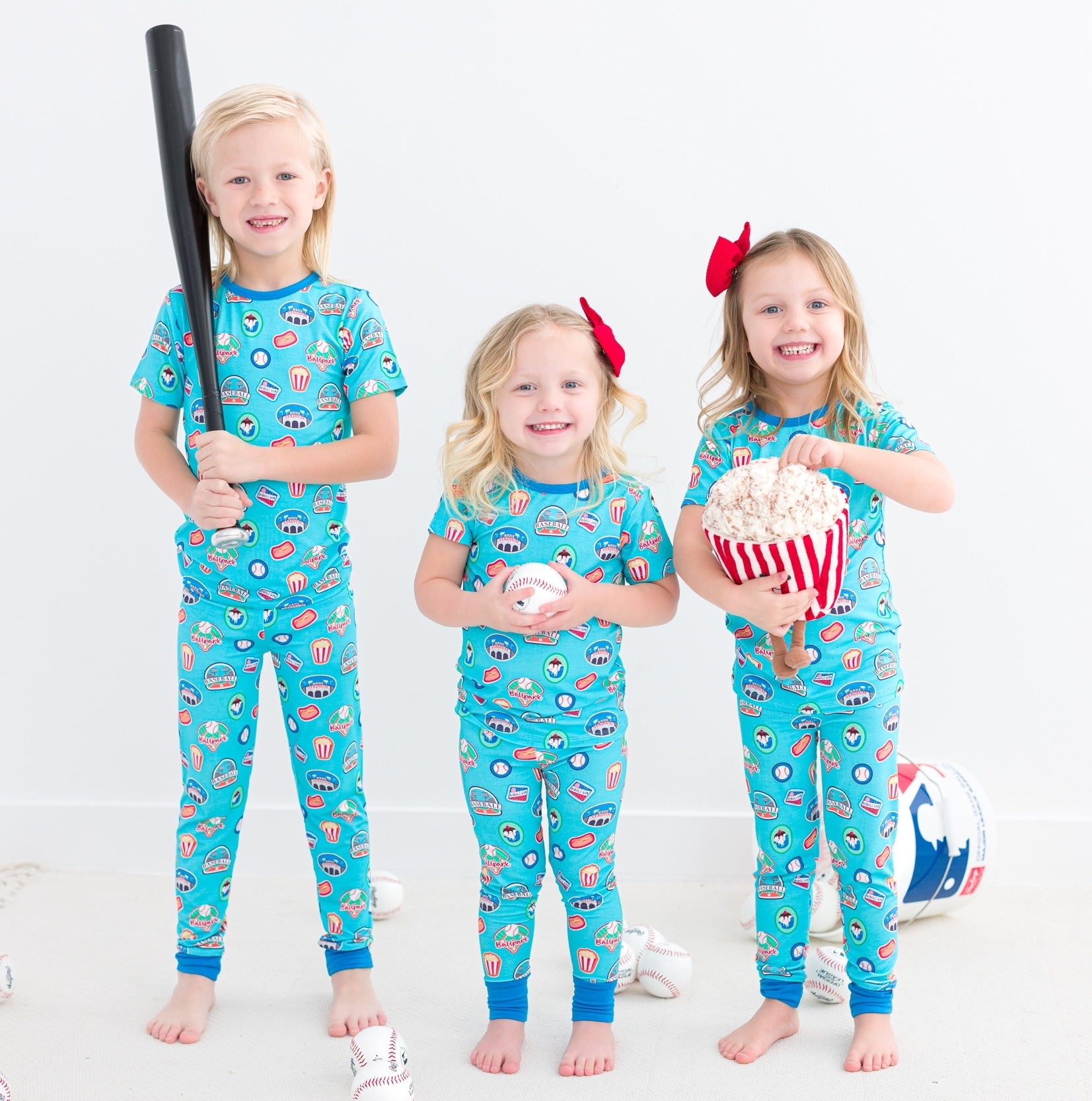 These baseball-themed pajamas are a dream come true for little sports fans! Made from a luxuriously soft blend of bamboo viscose and spandex, this breathable, stretchy set ensures all-night comfort while keeping bedtime extra fun with its adorable all-over print.