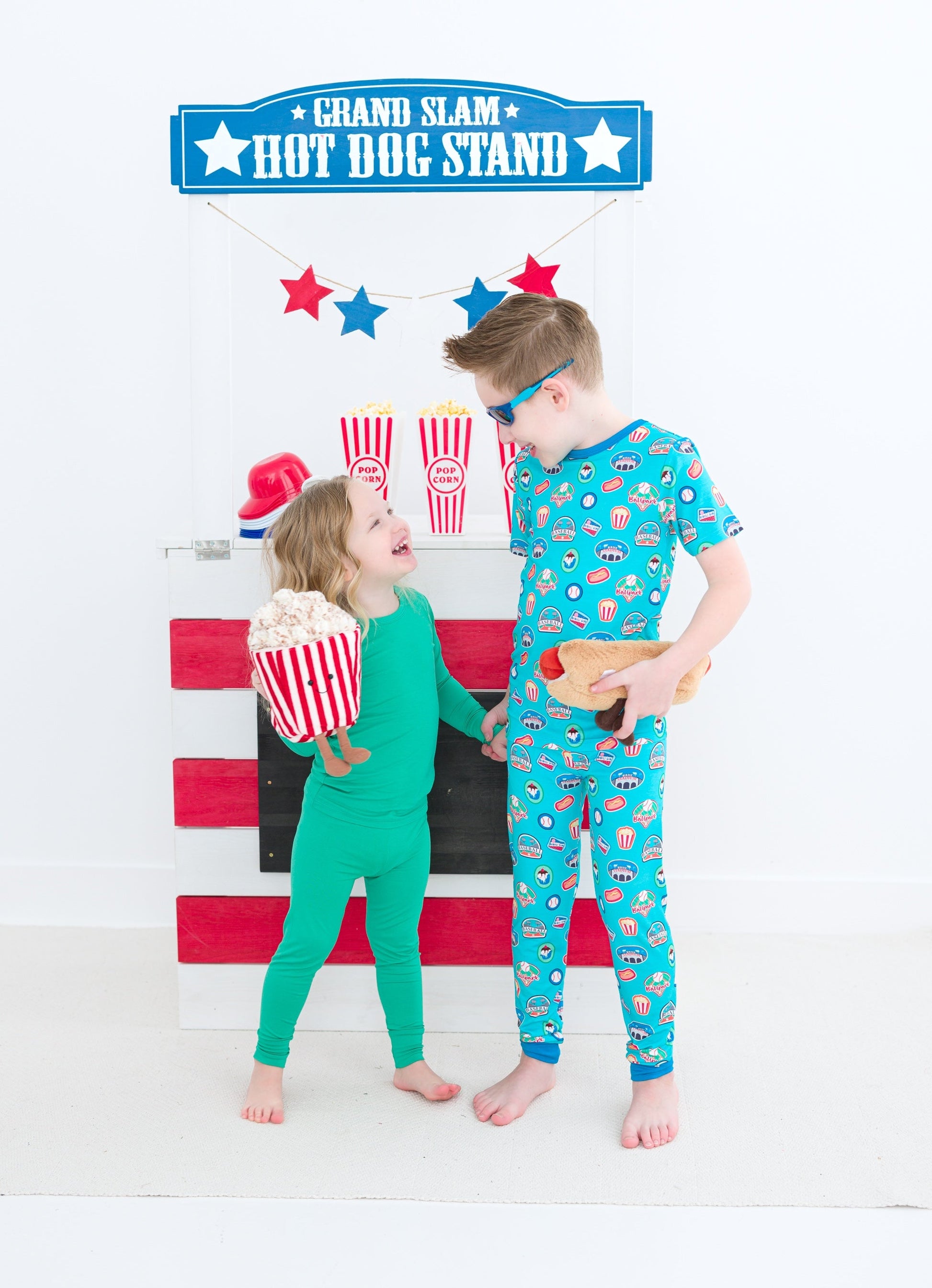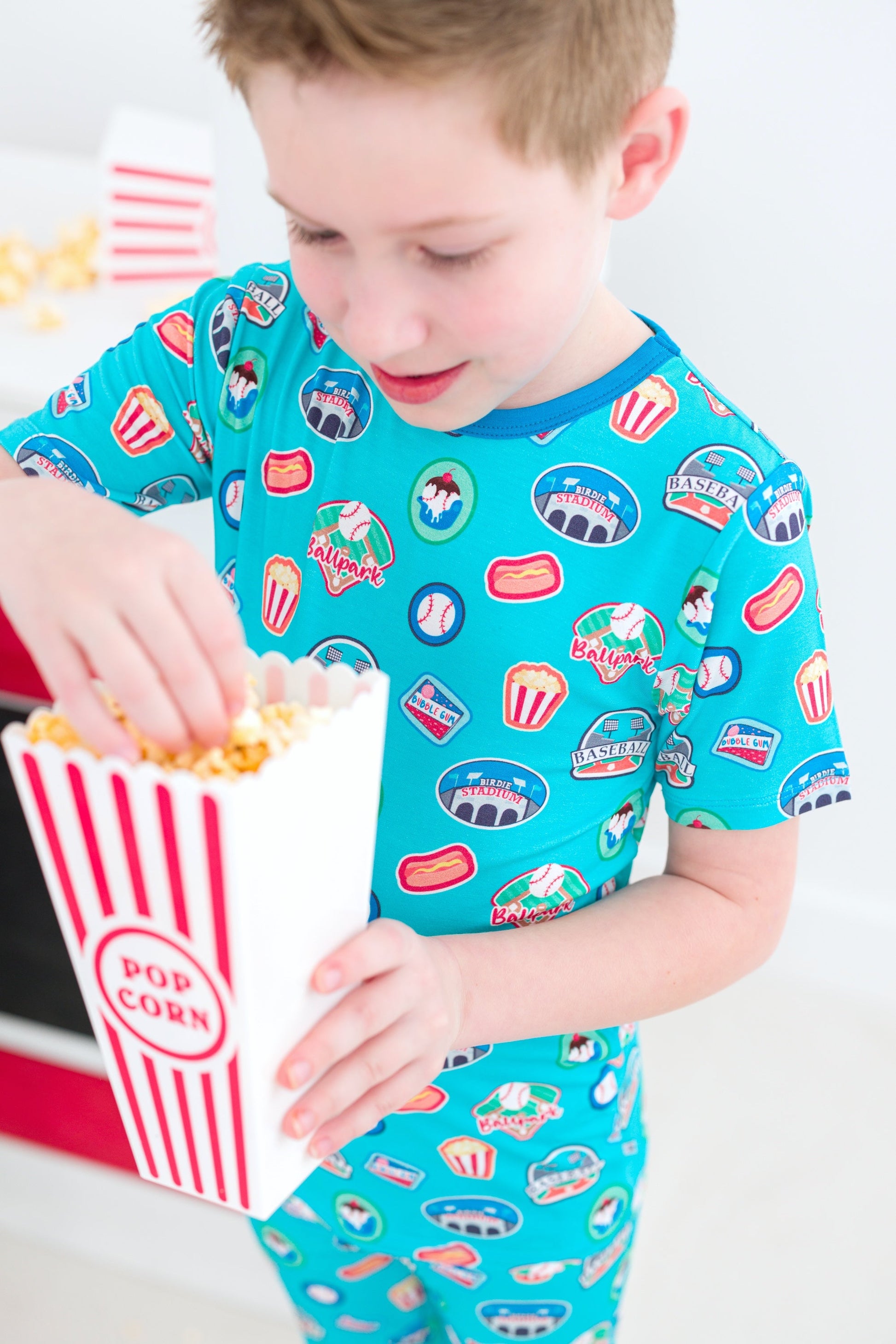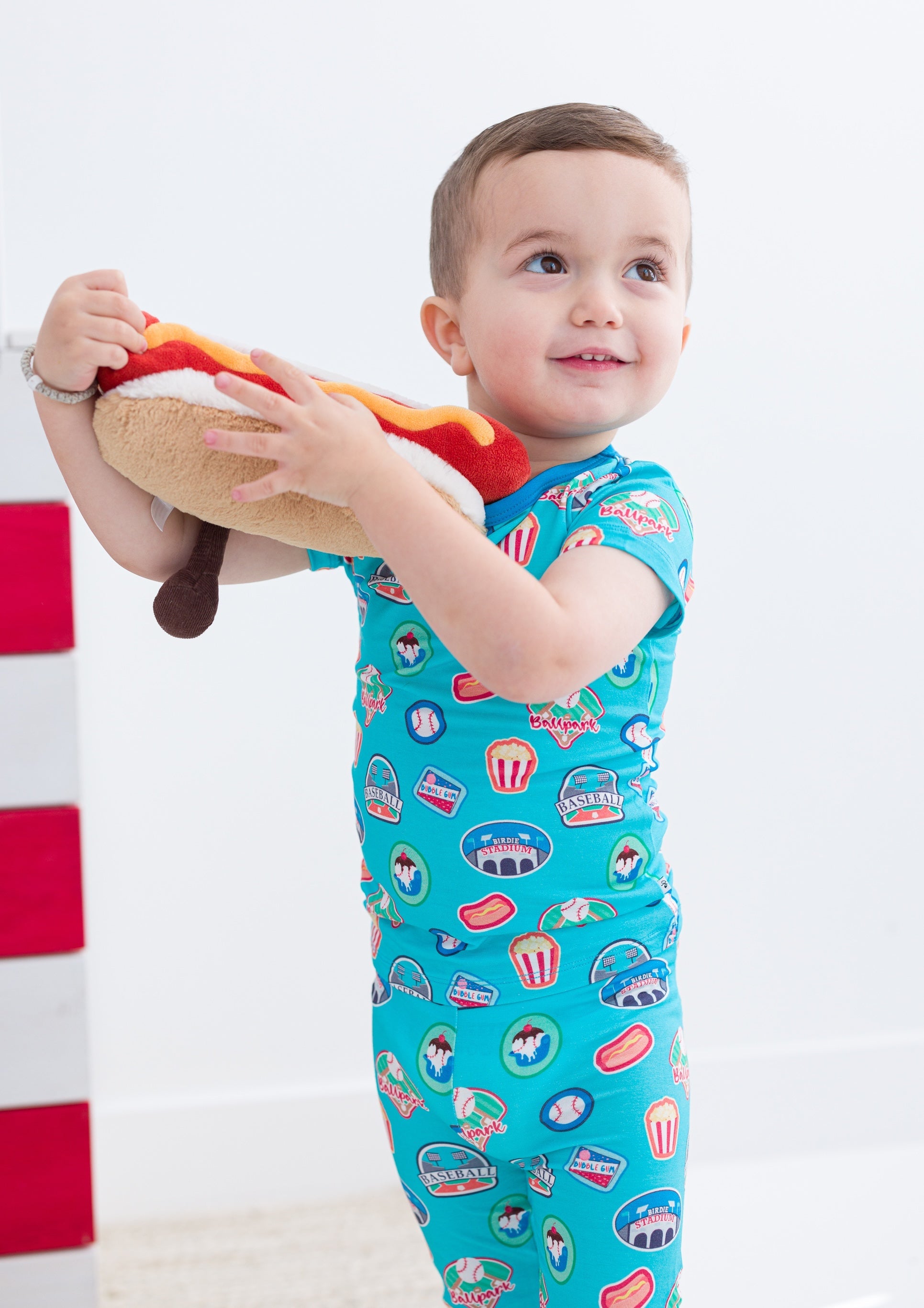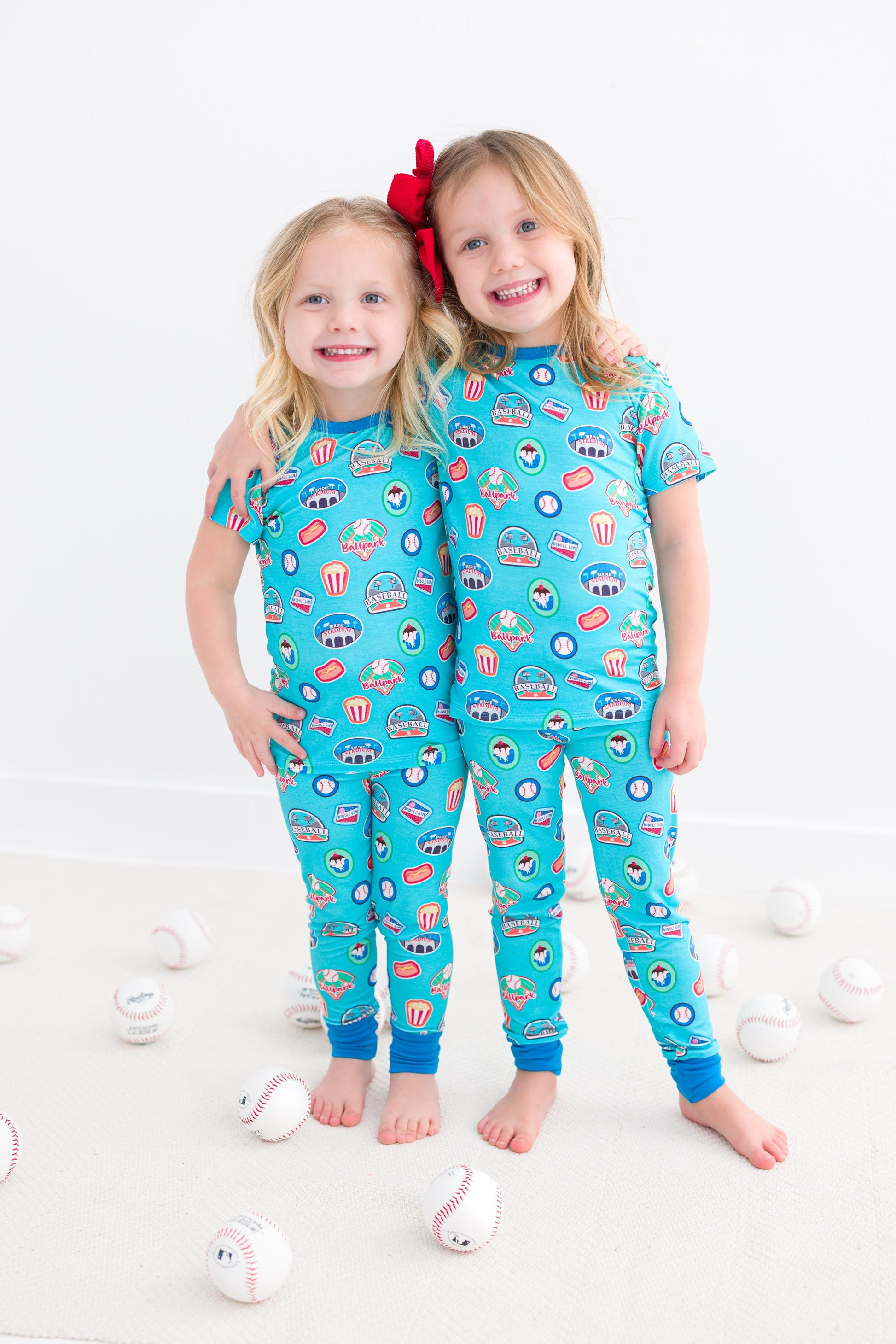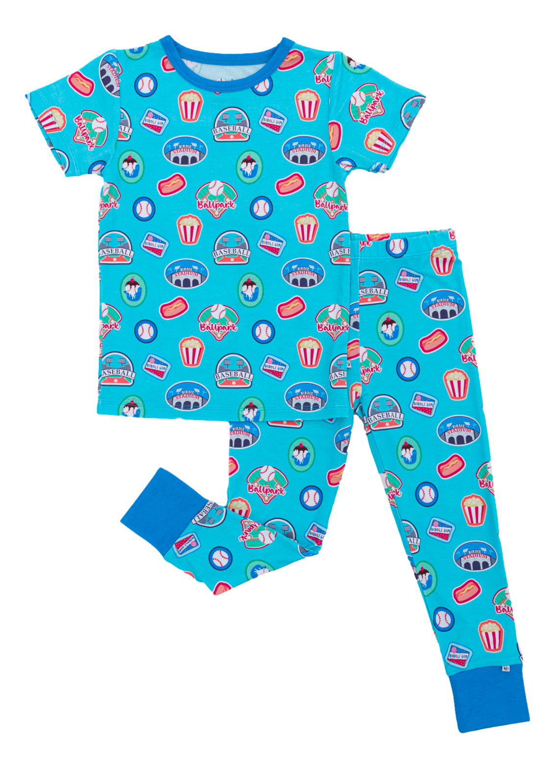 These baseball-themed pajamas are a dream come true for little sports fans! Made from a luxuriously soft blend of bamboo viscose and spandex, this breathable, stretchy set ensures all-night comfort while keeping bedtime extra fun with its adorable all-over print.